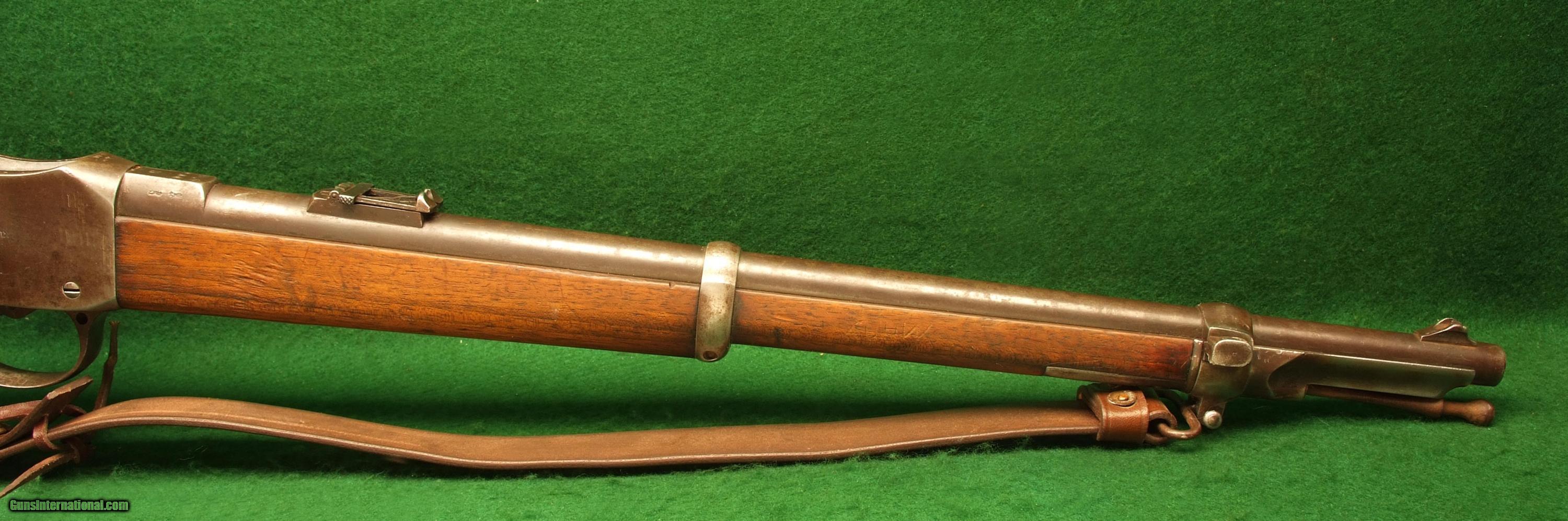 Description: This is a orginal Enfield Martini Henry artillary carbine. The bore has some light frosting but strong lands and groove with good luster. The gun is original and complete with the exception of the modern leather carrying strap. SOLD Manufacturer: Enfield Model: Martini Henry Caliber Info: 577/450 Barrels: 21 1/2 |