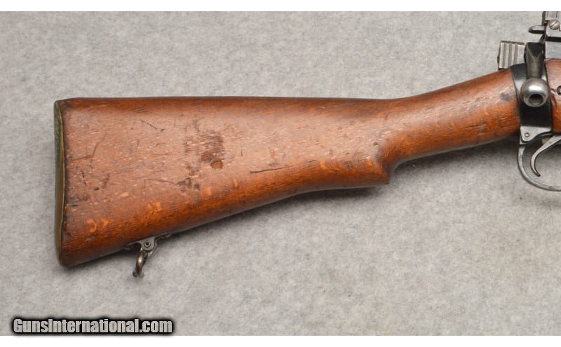 Description: This Enfield Model No. 4 Mark 2 bolt action rifle in .303 British is in good condition. The blued barrel and receiver frame are very good. The blued 25 1/4" barrel is excellent with sharp clear rifling in its bore. The trigger has a take-up then a firm crisp release. The smooth dark hardwood two(2) piece stock has several dings from use and handling. The No. 4 Mark 2 was produced from 1941 to 1957 when production ended. The No. 4 rifle was produced by England, the U.S., Canada and New Zealand. This example was produced in May of 1949. This Enfield rifle comes with one(1) 10 round detachable magazine, but does not come with a box or any accessories. .303 British SOLD Curio/Relic: Yes Metal Condition: Very Good Wood Condition: Good Bore Condition: Excellent Barrels: 25 1/4 Triggers: Blued Curved Smooth Stock Dimensions: LOP 13 1/4" Height 7 3/4" Length 44 1/4 Fore End: Matching Smooth Dark Hardwood Two-Piece Butt Pad: Brass Butt Plate with Access Door Weight: 9 lbs. 7 oz. Sights: Front Fixed Winged Blade with Rear Peep and Graduated Ladder Peep Item Location: West Chester, OH |
