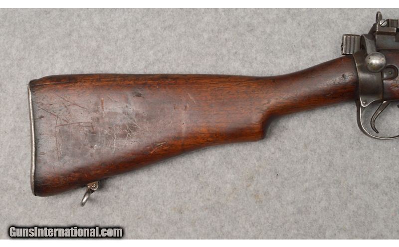 Description: This Enfield No. 4 Mk.1 battle rifle in .303 British is in good condition. The blued barrel and receiver frame are good with the blue fading and missing in several areas. The blued 25" barrel is very good with strong clear rifling in its bore, though dirty. The factory curved single stage trigger is still firm and crisp on release. The smooth dark walnut factory stock is good with the normal dents and dings of a WWII used battle rifle. The steel butt plate is good with a trap door that still opens and closes. This Enfield rifle is part of the cache that was found after many years in a cave in Ethiopia. This Enfield is a shooter grade piece of WWII history. This No. 4 rifle comes with a 10 round detachable magazine and a cardboard box. .303 British SOLD Curio/Relic: Yes Metal Condition: Good Wood Condition: Good Bore Condition: Very Good Barrels: Blued 25 Triggers: Factory Blue Curved Single Stage Stock Dimensions: LOP 13 1/2 Fore End: Matching Smooth Dark Walnut Butt Pad: Steel with Trap Door Weight: 9 lbs. 5 oz. Sights: Front Winged Blade with Rear Peep and Graduated Ladder Item Location: West Chester, OH |