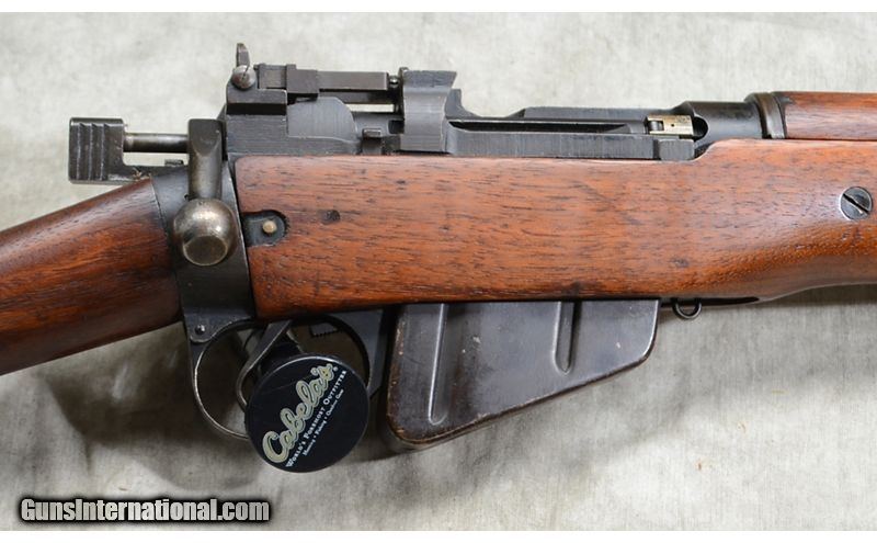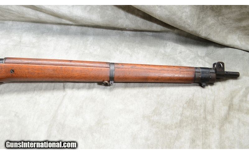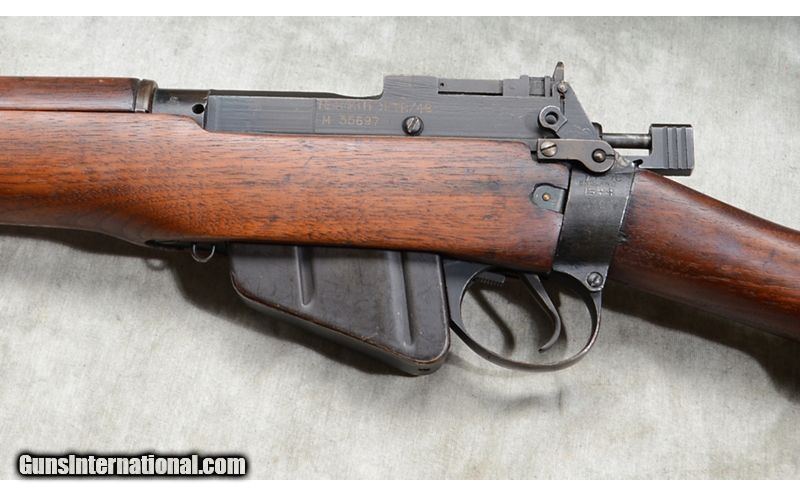 Description: The Enfield arguably served its crown in more exotic places than any other military rifle, from Alsace to Zanzibar. This one features a full-length stock, detachable magazine, peep sight, and a curved non-magnetic metal butt plate. It has nice wood, nice metal, and it has seen little abuse. .303 British SOLD Chambers: 10 Metal Condition: Very good. Wood Condition: Very good. Bore Condition: A little dark but has good clean rifling. Barrels: 25-inch Triggers: Factory trigger Stock Dimensions: 13-inch LOP. Fore End: Full-length hardwood with heat shield. Butt Pad: "Curved metal plate with storage port. Brown color, non-magnetic. Weight: 9 lb - 1 oz Sights: Post and ladder-style peep Item Location: Rogers |