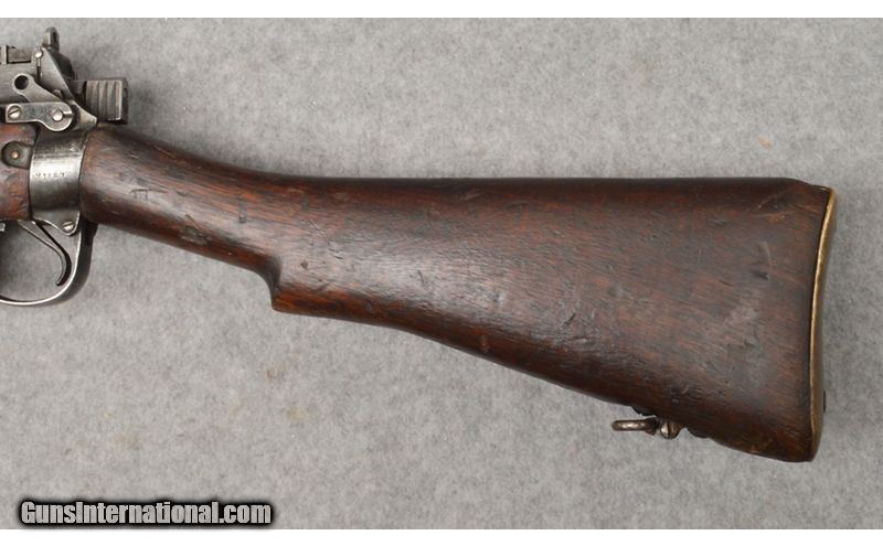 Description: This Enfield No. 4 Mk1 Bolt Action battle rifle in .303 British is in good condition, considering its age. The No. 4 was discontinued in 1957. The blued barrel and receiver are in good condition with the blue fading in all spots. The blued 25" barrel is in very good condition with sharp clear rifling in its bore. The factory curved trigger is still firm and crisp on release. The smooth dark walnut stock is in good condition with dents and dings from use and handling during war time, but much less than would be expected. The brass curved butt plate is good with a trap door that still opens and closes. The No. 4 could use a very good cleaning to operate back to near issue condition. This Enfield No. 4 Mk1 was part of a cache that was found in Ethiopia in a cave after many years. This Enfield rifle comes with a magazine and a cardboard box. .303 British SOLD Curio/Relic: Yes Metal Condition: Good Wood Condition: Good Bore Condition: Very Good Barrels: Blued 25 Triggers: Factory Blued Curved Stock Dimensions: LOP 13 1/4 Fore End: Matching Smooth Walnut Butt Pad: Brass Semi Curved with Trap Door Weight: 9 Lbs, 3 Oz. Sights: Front Winged Blade with Rear Adjustable Ladder Battle Sight Item Location: West Chester, OH |