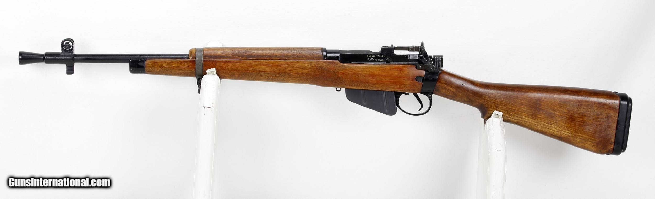 Description: ENFIELD, NO#5, MK I, JUNGLE CARBINE, 303 British, 20 1/2" Barrel, Excellent Bore, SN#T9218, MFG; Dec, 1945. "Royal Ordnance Factory Fazalerely", Matching Bolt & Receiver. British Issue Sling, Rare Original Issue British Bayonet, W/Fine Scabbard Made by Royal Ordinance Factory, Poole "1946", Includes Frog for a NO#4 MK 1 Rifle. Includes Two Mags. Ships to Lower 48, W/Insurance: $40.00 SOLD Rifle Caliber: .303 British |