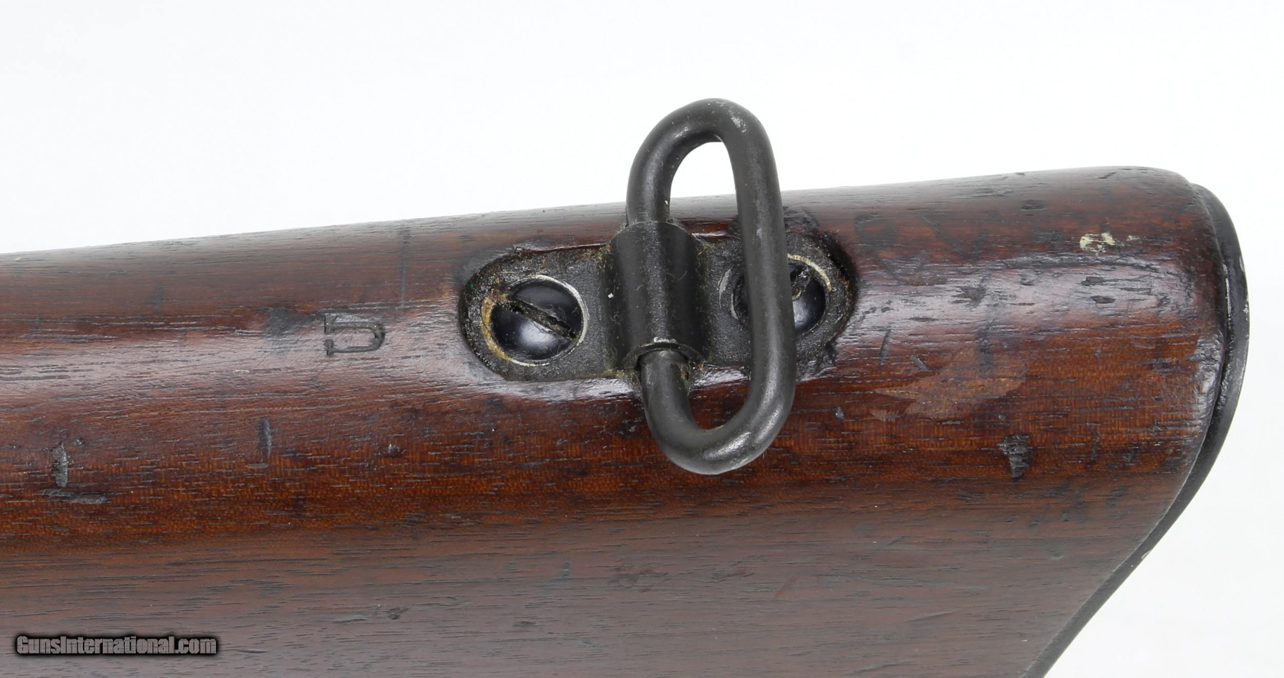 Description: ENFIELD SMLE, NO#4, MK I, 303 British, LONGBRANCH ARMORY, ONTARIO, CANADA, "1942". SN#10L1254, MFG: 1942. "ALL MATCHING NUMBERS", Fine Stock, Appears to be Walnut. British Issue Sling, 1941 Receiver Cover, 1945 Bandolier with (10) Stripper Clips. Correct No.4 Bayonet, with Scabbard, Frog is USA AfterMarket Reproduciton. Rifle comes with Two Mags. An Extremely Fine Original Canadian Made Enfield. Owner States the Rifle is Very Accurate. Shot Very Little. Ships to Lower 48, w/Insurance: $45.00 SOLD Curio/Relic: Yes Rifle Caliber: .30-03 |