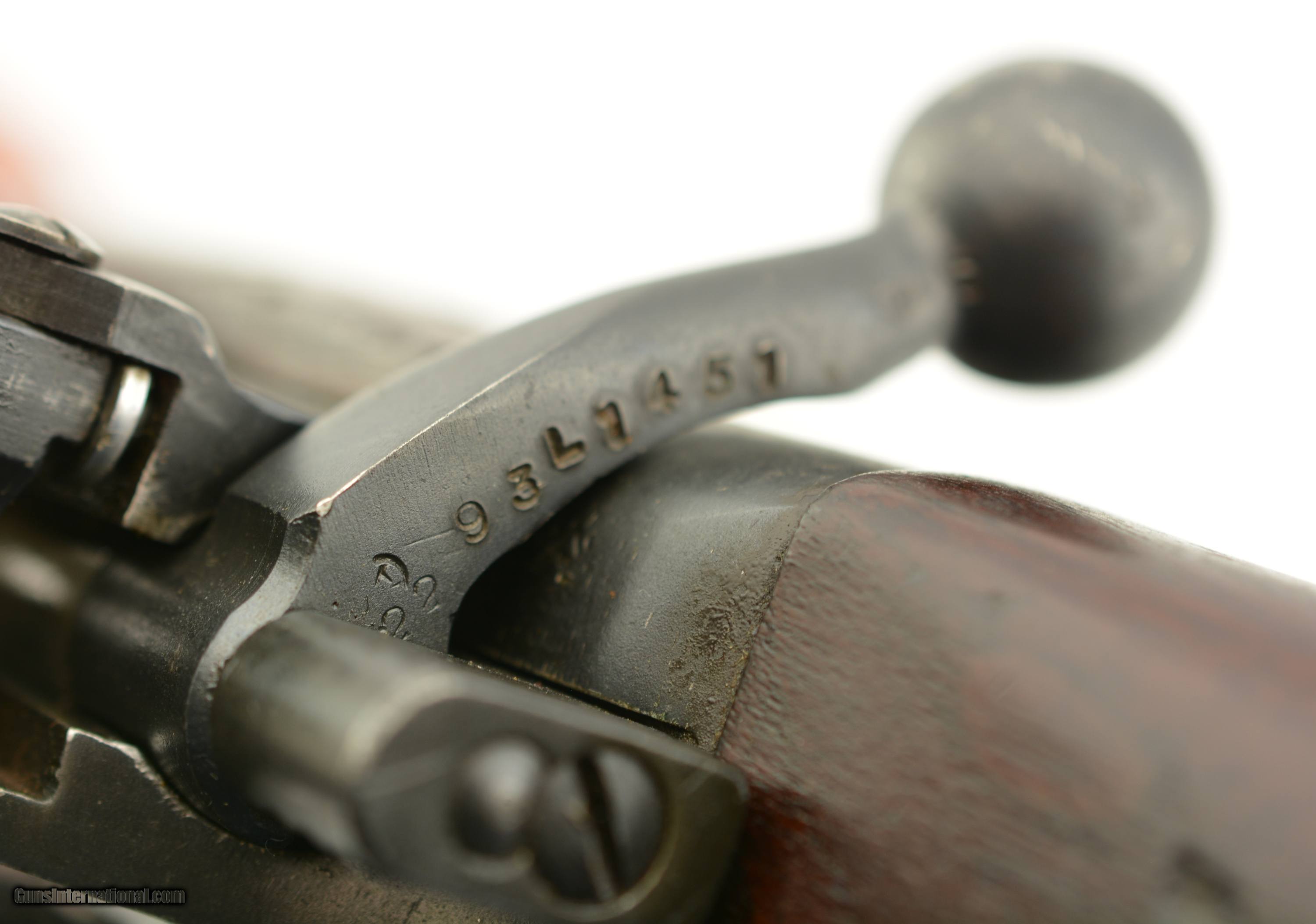 Description: Serial #93L1451, .303 British, 25" barrel with a fine, bright bore that has some traces of mild freckling within the grooves. This is a 1950-dated rifle that has retained 92-95% of the original blue finish, with some gray fading at the import-marked muzzle, silvering along the high and exposed edges, as well as some further mild finish loss on the matching numbered bolt. A correct, Mk. 3 pressed metal rear sight is installed. The walnut buttstock, forend, and handguards have numerous small handling marks and minor surface blemishes throughout. Additionally, a matching numbered magazine is included. This is a fine-near excellent example of a Korean War-dated Canadian No. 4 rifle, and would make a great addition to any collection. FFL or C&R SOLD Curio/Relic: Yes Manufacturer: Enfield Model: No. 4 Serial Number: 93L1451 Caliber Info: .303 Gauge Info: .303 |