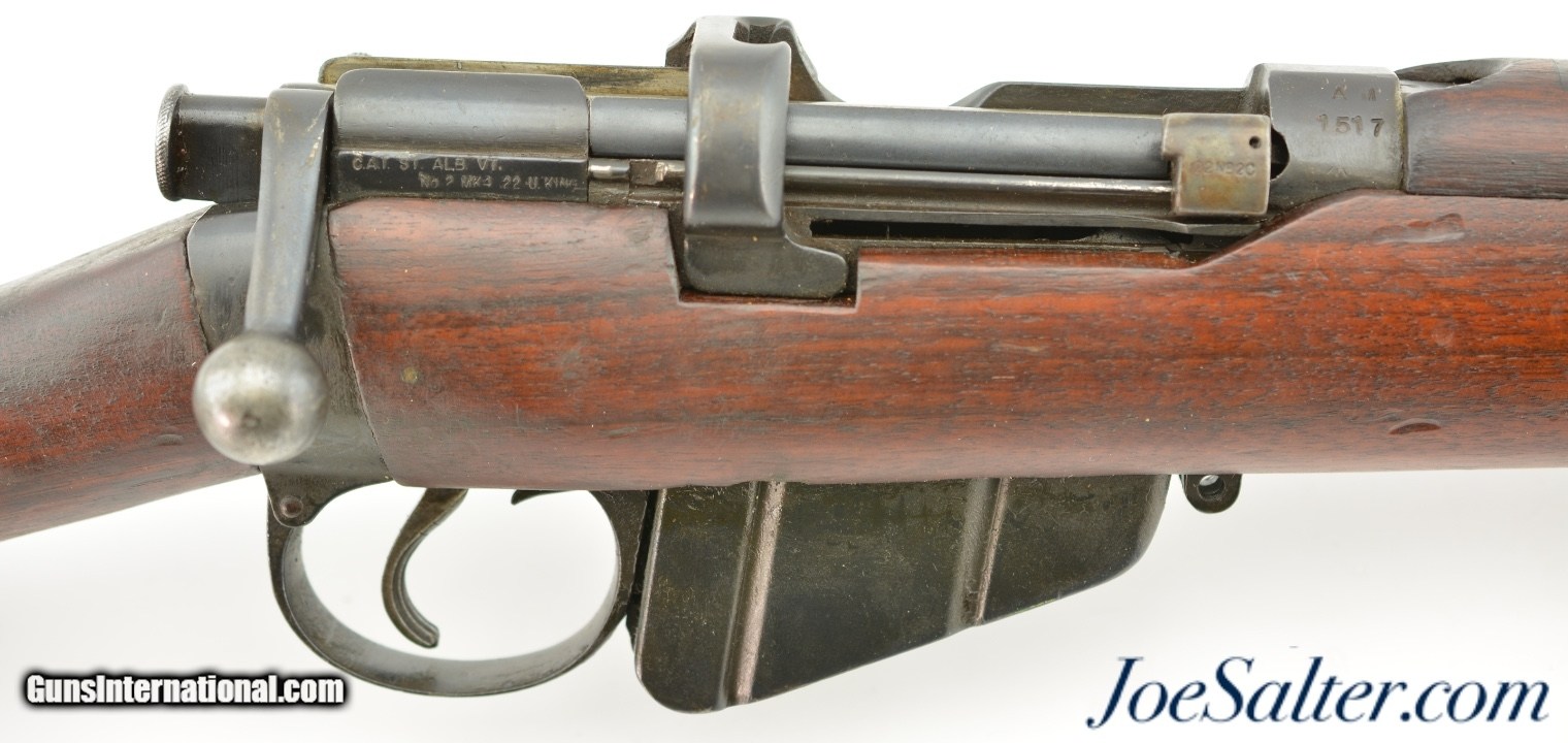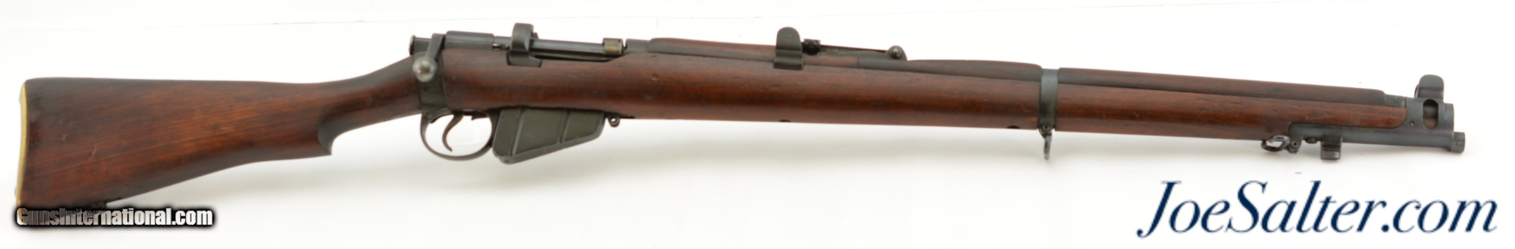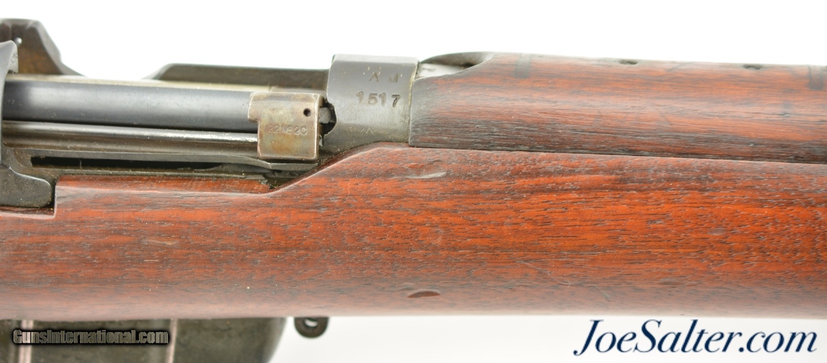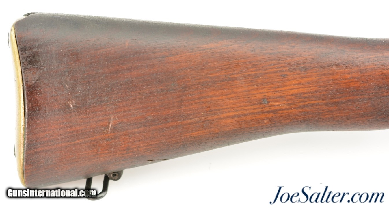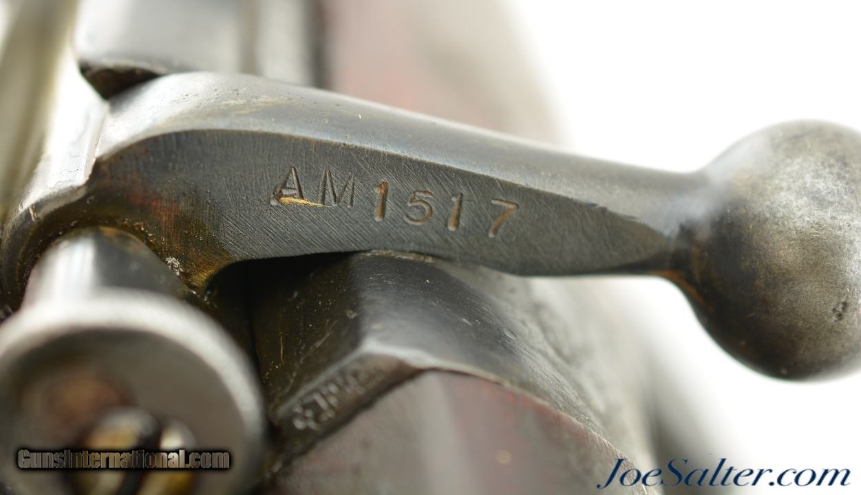 Description: Serial # AM 1517, .22 LR, 25" barrel with an excellent, bright bore. This was a Parker-Hale conversion of a 1916-dated SMLE Mk. III as an Air Ministry contract for RAF training rifles in the late 1930s. During the conversion, the rifle was given a new serial number with an "AM" Air Ministry prefix, which is also present on the bolt and nosecap, and there are Parker-Hale markings on the knox form of the .22 caliber barrel. The metal retains 90-92% of the conversion-applied blue finish, with some silvering along the high and exposed edges, as well as on the bearing surfaces and handle of the bolt. A US importer stamp is present on the right side of the receiver just ahead of the wrist socket. The walnut buttstock, forend, and handguards are in fine condition with some minor handling marks and small surface blemishes scattered about the original oil finish, and a small double-F (Fianna Fáil) Irish property stamp is present on the underside of the forend ahead of the magazine well. An unmarked magazine housing, minus the spring and follower, is included. After the war, many of these rifles were sold to the Irish government, with many of them subsequently imported into the US in the late ‘80s & early ‘90s. This is one of those imported rifles, and is in fine-near excellent condition. FFL or C&R; SOLD |
