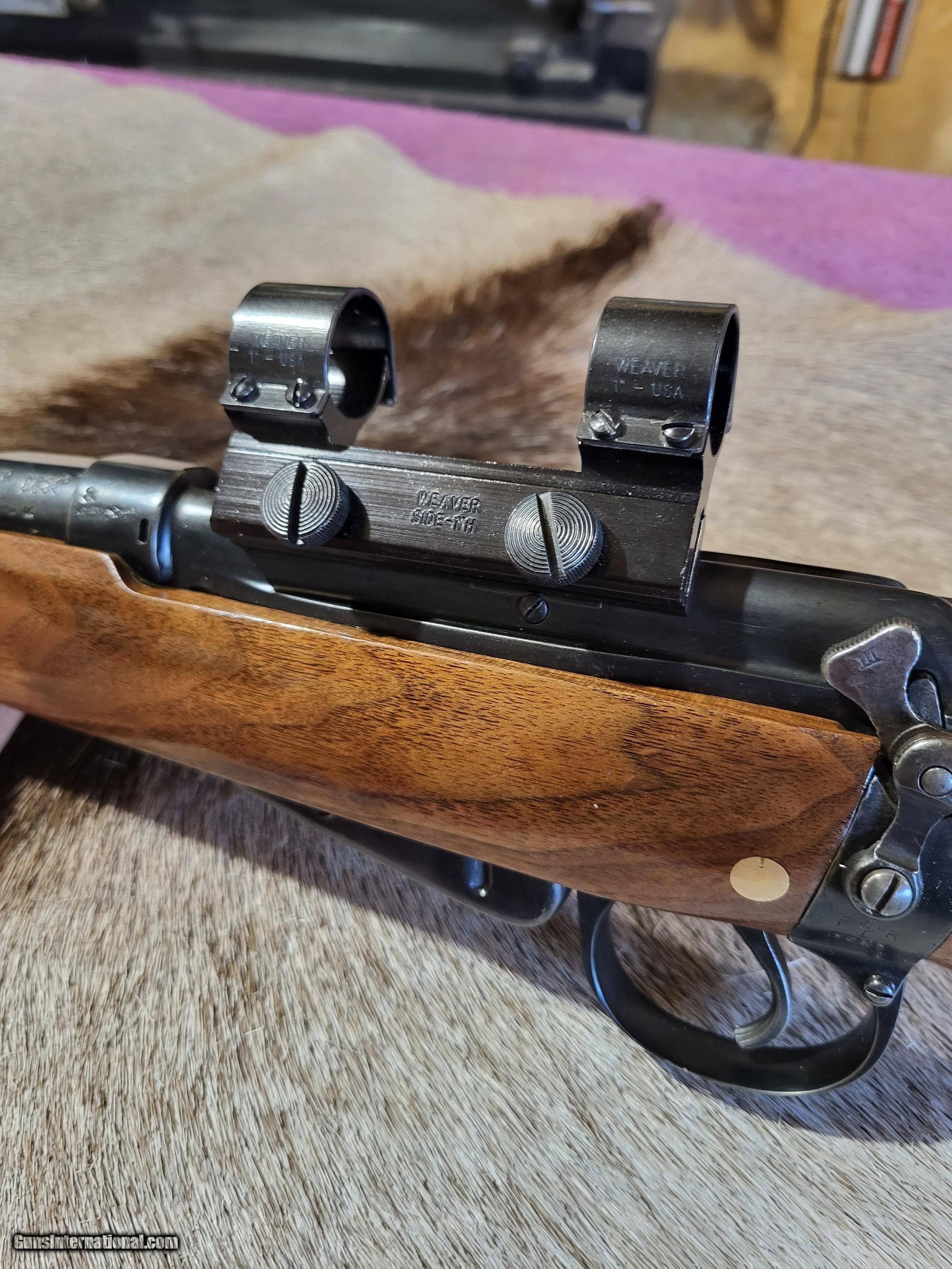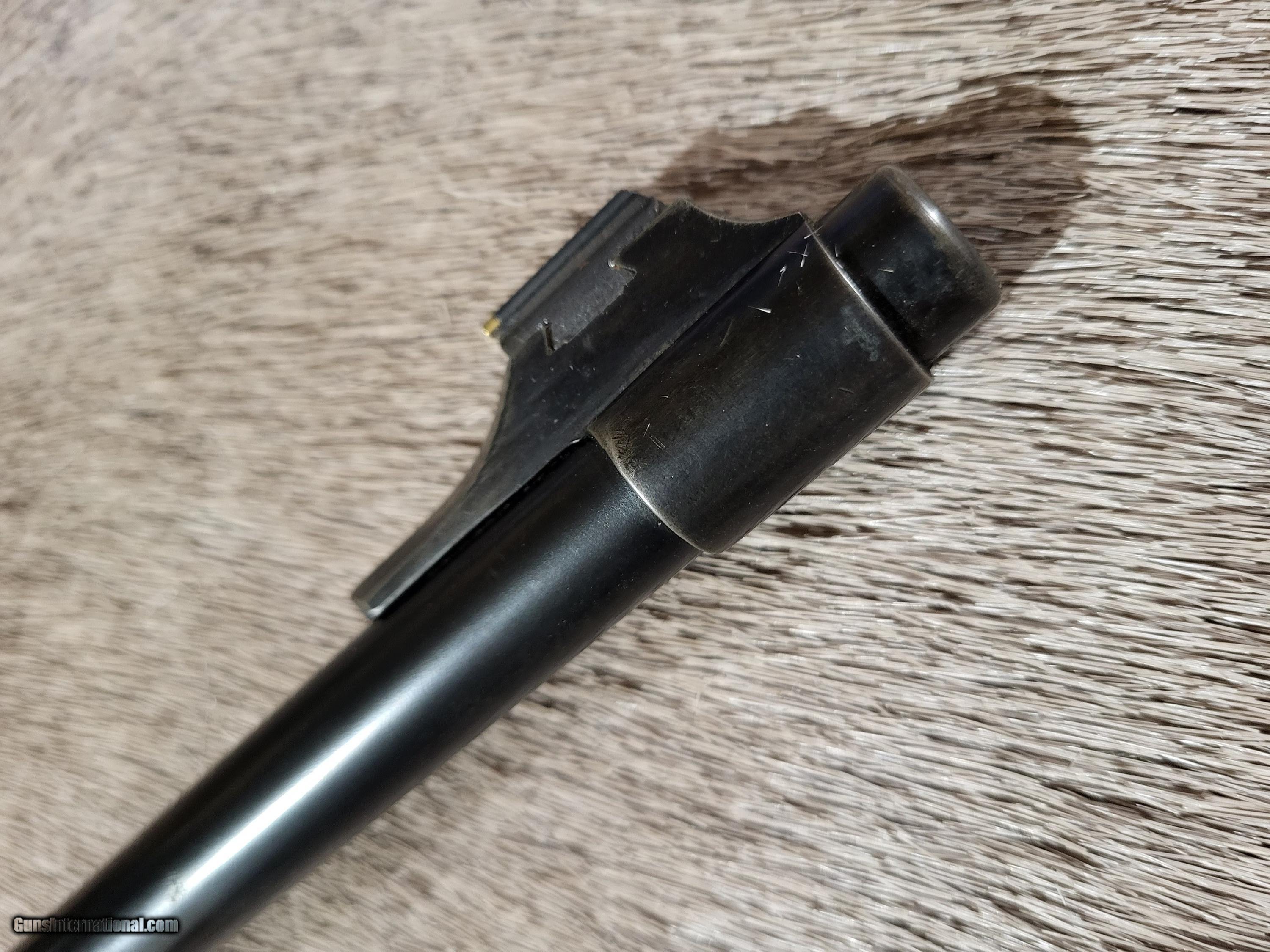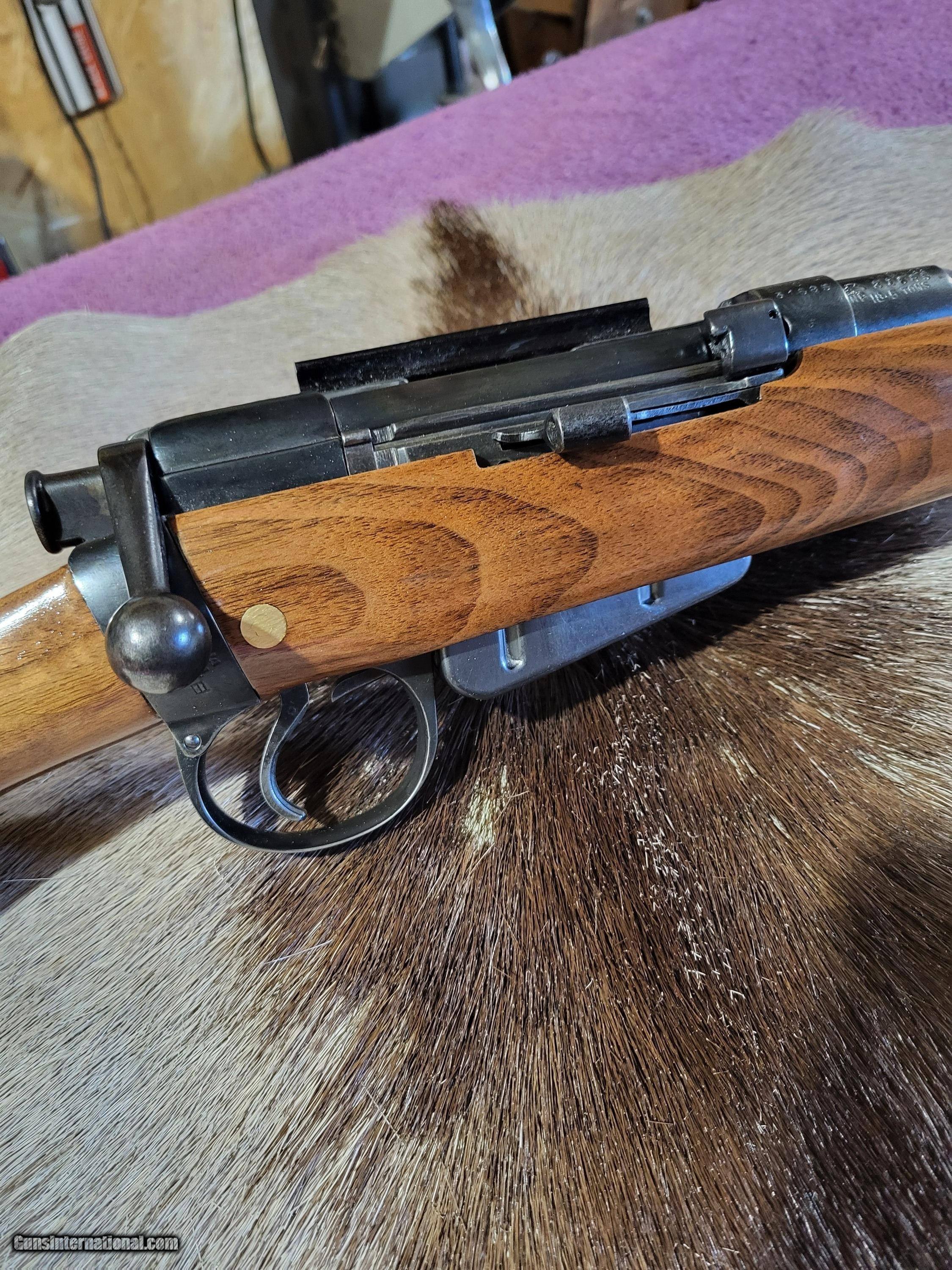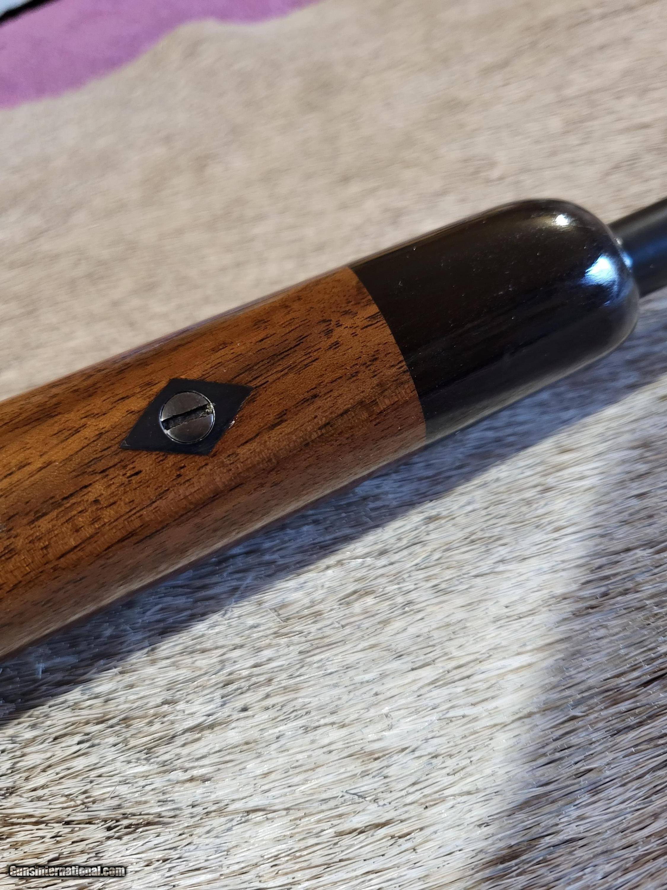 Description: Early (1917) British .303 sporter styled after the famed Lee-Speed used by Col. Patterson to hunt the man-eating lions of Tsavo. Excellent walnut stock. Ebony forearm tip and cap. Custom forearm screw(shown). Very good bore on 25" barrel. Safari style open V with 2 leaves. Rear sight is adjustable for windage. Banded front sight. Barrel band front sling swivel. Detachable weaver #2 scope base and rings. 5 rnd. magazine. Period correct magazine cutoff. Exceedingly accurate with 125 gr.,7.62 bullets as well as heavier. L.O.P. is 13 3/4". Wt. 7.6 lbs. Unloaded. Buyer pays $40 shipping. $575.00 O.B.O. SOLD Rifle Caliber: .303 British Manufacturer: British Model: #1, Mark III Barrel Length: 25 Condition: Very good Metal Condition: Very good Wood Condition: Excellent Bore Condition: Very good Action: Short throw Lee Enfield Butt Pad: Decelerator LOP: 13.75 Weight: 7.6 lbs. Sights: Open and scope mts. Manufacture Date: 1917 |