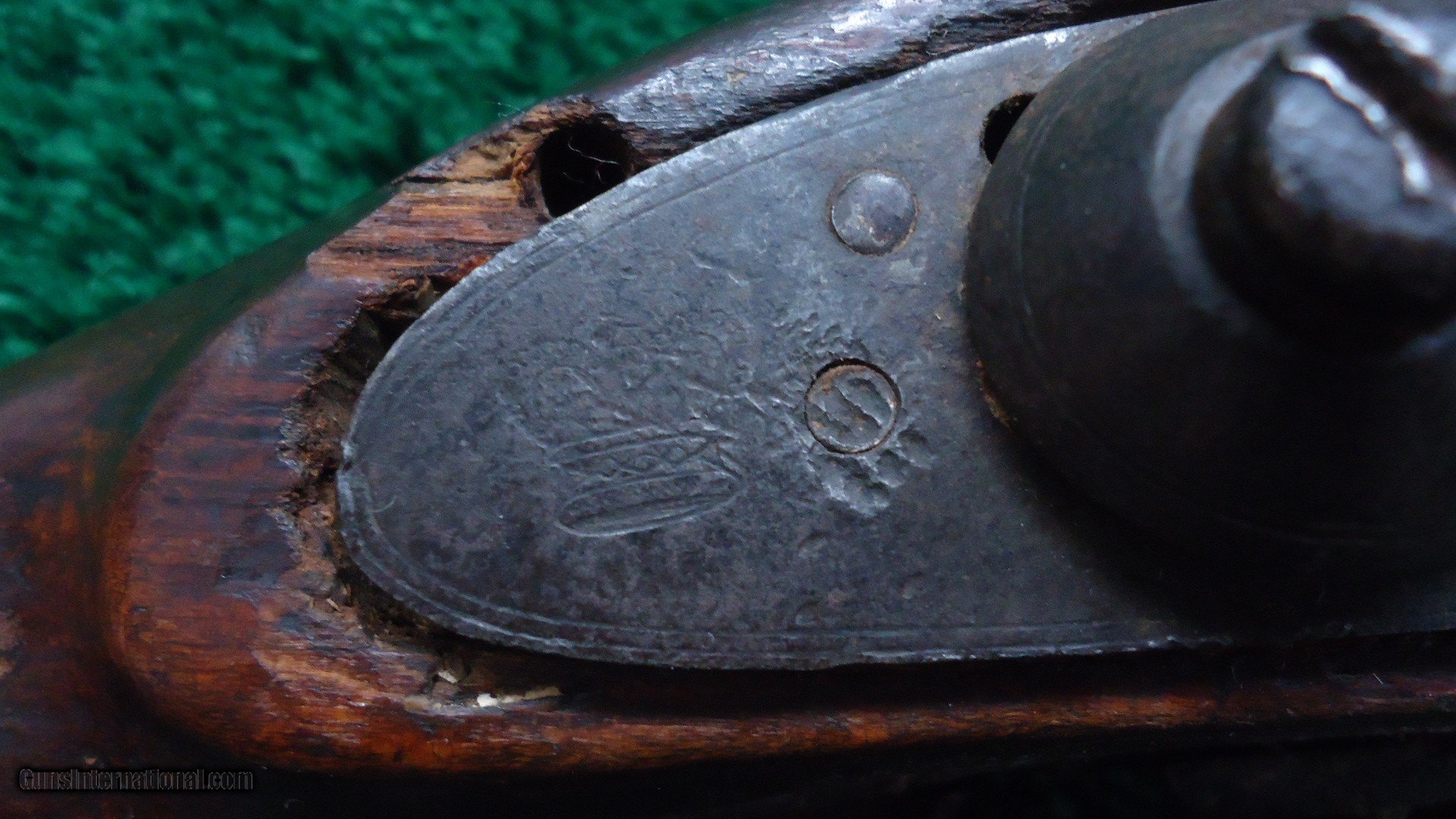 Description: Thought to be a Second Model '53 Pattern with solid barrel bands that are retained by band springs. Lock is marked "1862" over "Tower" with the Crown behind the hammer. Has 2 flat steel barrel bands and a steel forend cap with the original ramrod. 37 inch round smoothbore barrel. Could be commercially manufactured by any number of private barrel, stock and lock makers. It does not have the crown and “VR” cipher or any martial marks. Has serial number 693 on the barrel flat. Wood shows typical handling mars and dings. Steel buttplate. Lock is not secure and wants to fall out. Gun needs a tune up. Leroy Merz Antique Firearms specializes in antique and vintage Winchesters and other fine American firearms. Since 1965 Mr. Merz has taken part in the world of firearms and has been a contributor to many well known reference books. We have hundreds of additional guns in every price range at our home online. Search for Merz Antiques in google. SOLD Antique: Yes |