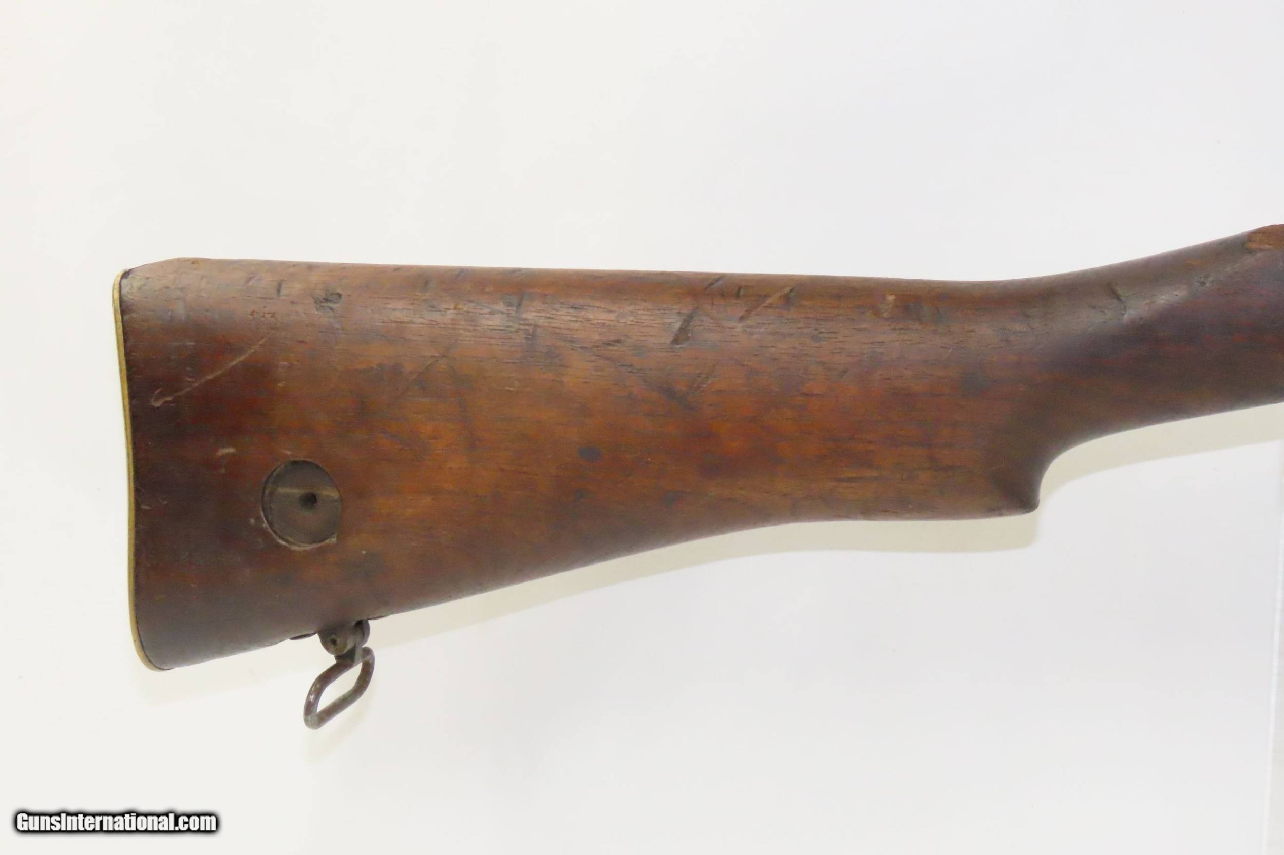 Description: WORLD WAR I Era B.S.A. Short Magazine Lee-Enfield No. 1 Mk. III* Rifle C&R Birmingham Small Arms Company SMLE Here we present a C&R Short Magazine Lee-Enfield (SMLE) No. 1 MK III* Rifle, made in 1918 at Birmingham Small Arms Company in Birmingham, England. The Lee-Enfield is a bolt-action, magazine fed, repeating rifle that served as the main firearm used by the military forces of the British Empire and Commonwealth during the first half of the 20th century. The best-known Lee–Enfield rifle, the SMLE Mk III, was introduced on January 26, 1907. During the First World War, the SMLE Mk III was found to be too complicated and expensive to manufacture, and demand outpaced the supply. In late 1915 the Mk III* was introduced incorporating several changes, the most prominent of which were the deletion of the magazine cut-off mechanism, which when engaged permits the feeding and extraction of single cartridges only while keeping the cartridges in the magazine in reserve, and the long-range volley sights. Rifles with some or all of these features present are found, as the changes were implemented at different times in different factories and as stocks of parts were depleted. The magazine cut-off was reinstated after the First World War ended, and not entirely dispensed with in manufacturing until 1933. Some rifles with cut-offs actually remained into the 1960s. Strong action. The bore is bright and sharply rifled. Solid stock with expected wear and is missing a chip just behind the frame. This firearm is classified as a Curio & Relic. Barrel is 25 inches. Caliber: .303 British Overall condition as seen in photos. Very Fast. Very Safe. FREE SHIPPING. Will need to be sent to your local FFL or C&R licensee. This firearm is classified as a Curio & Relic. Guaranteed AUTHENTIC & Includes CERTIFICATE OF AUTHENTICITY. ancestryguns $1200 #215356 SOLD Curio/Relic: Yes |