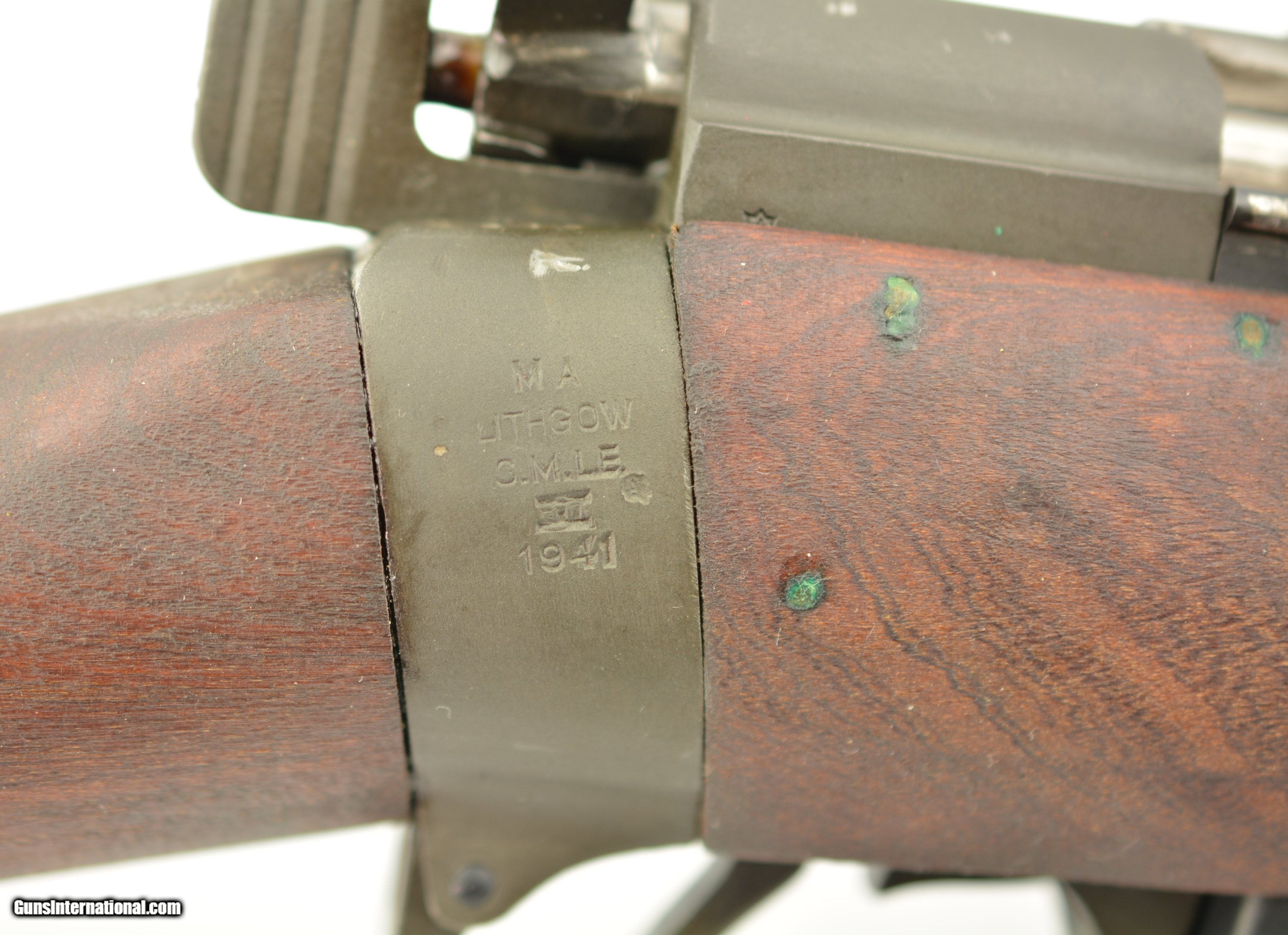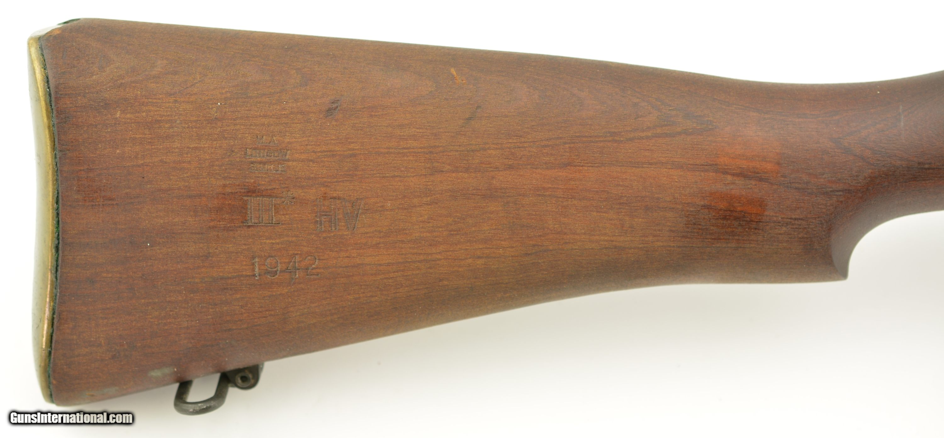 Description: Serial #C81113, .303 British, 25" barrel with an excellent, bright bore. This is a 1941 dated, JJCo Imported/built rifle that retains 98-99% of an overall parkerized finish with some mild silvering on the high and exposed edges, as well as along the bearing surfaces of the matching-numbered bolt. The nosecap and forend are also matching-numbered, and there are no import marks visible. The stock, forend, and handguards are in excellent condition with almost no handling marks or blemishes, and the right side of the buttstock has numerous Australian markings: "MA / LITHGOW / SMLE / III* HV (high velocity) / 1942." The brass buttplate has an overall yellow-ochre patina with numerous small impact marks and blemishes throughout. A single unnumbered magazine is included. This is an excellent example of a JJco rifle that they did a great job hiding the import mark. FFL or C&R SOLD Curio/Relic: Yes Manufacturer: Enfield Model: No.1 Caliber Info: .303 Gauge Info: .303 |