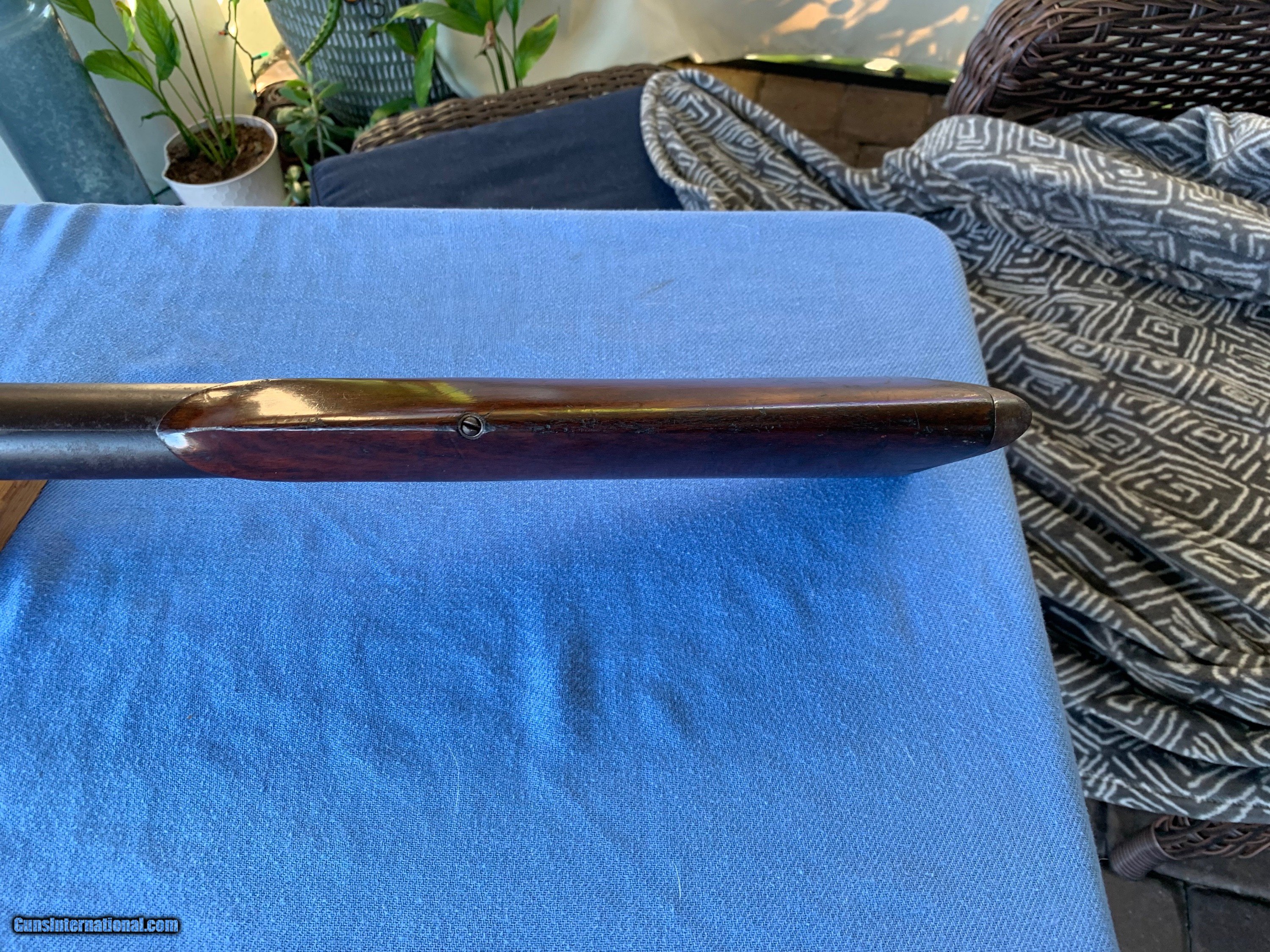 Description: PENDING-----ON HOLD-----Here's a Excellent Example of a Evan's 1st Model rifle ! Serial number 346 . Shipped in early 1873. 44 rimfire . Only 15000 Evan's Rifles made in totol production. Gun holds 34 cartridges. Gun is in excellent condition . Most of the original finish still remaining on the metal turning a nice even blue brown finish . The lever has most of the original nickel finish still remaining the rest flaking . Wood is in excellent condition. Gun has original sights . Bore and mechanics are very good . Excellent working condition . Overall a excellent example of a rare bird ! Please review my photos and please email me with any questions ? 3 day inspection as allways ! Thank you for looking , Little Jo SOLD Antique: Yes Rifle Caliber: .44 Rimfire Manufacturer: Evans Model: 1st model Lever rifle Serial Number: 346 |