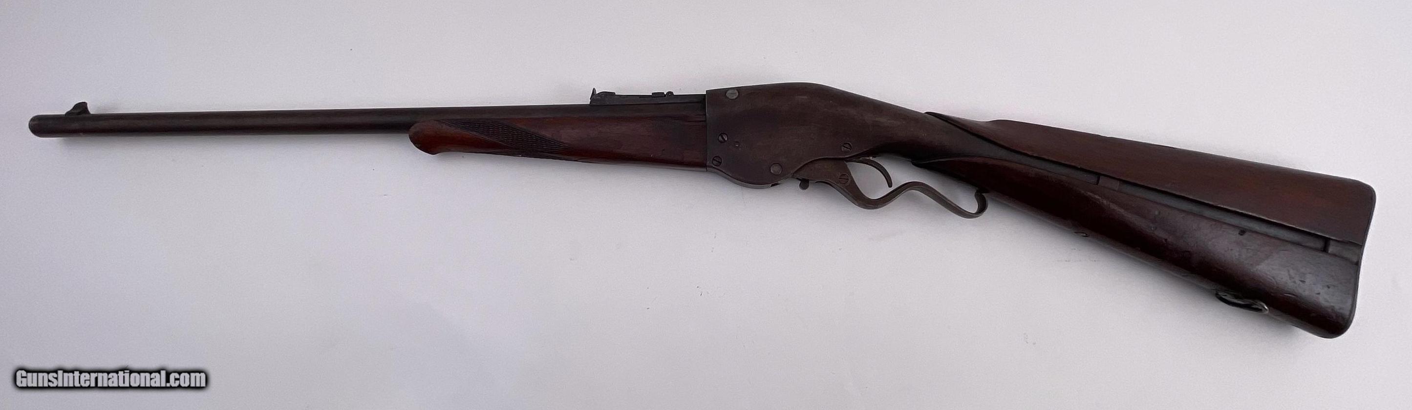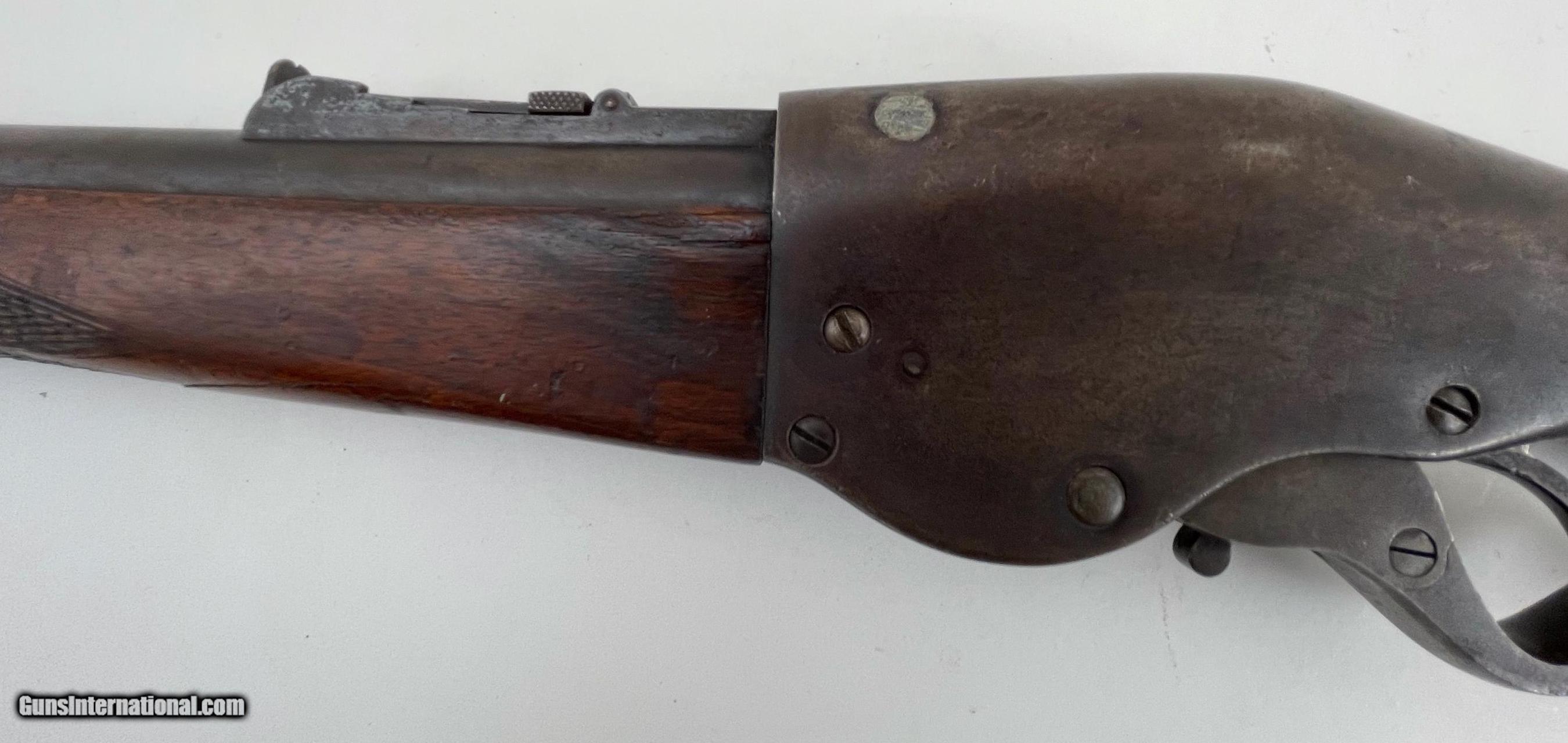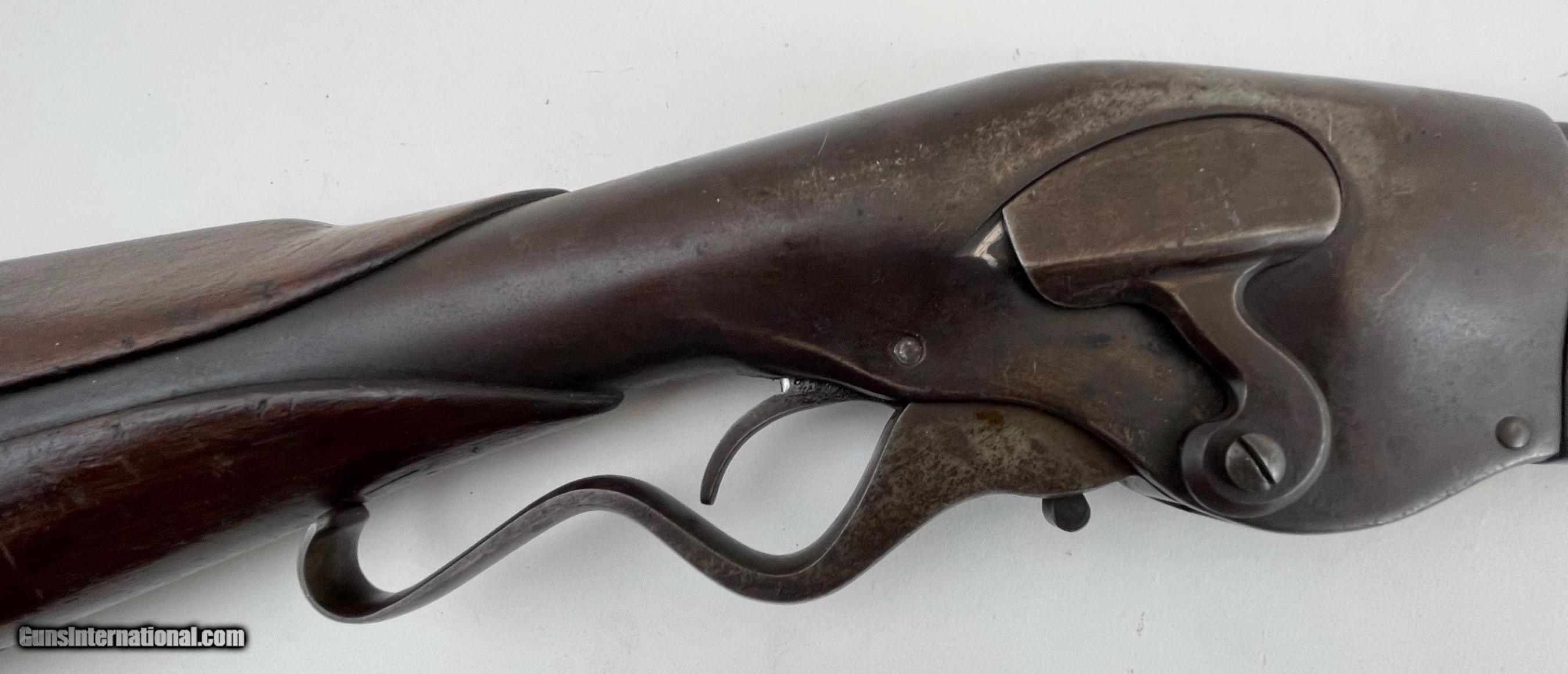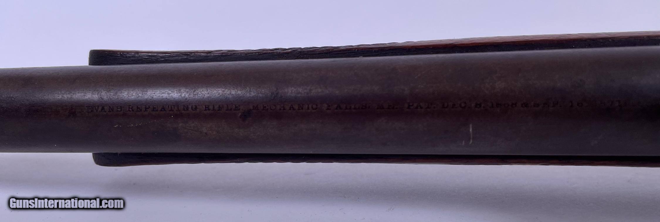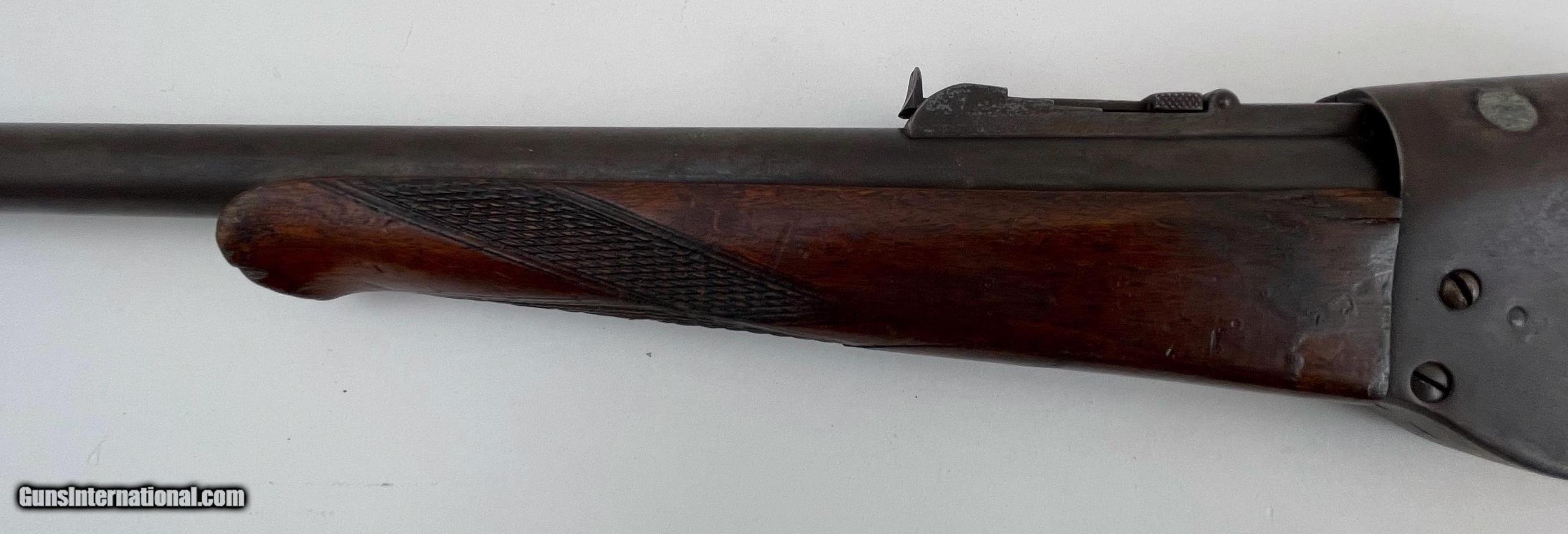 Description: Action is good and the bore has a little roughness. The only marking we could find was "TT' or "11" on lower barrel under forearm. See photos for condition. SOLD Antique: Yes Manufacturer: Evans Model: Sporting Rifle Barrel Length: 21 |