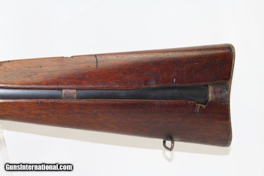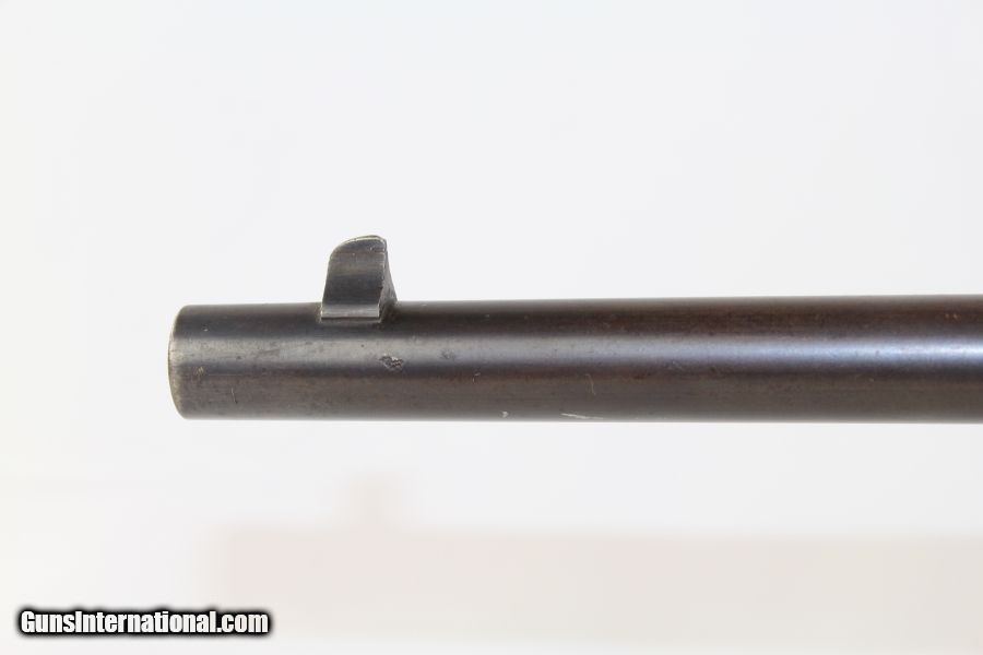 Description: UNIQUE Antique EVANS Lever Action Carbine of MAINE SCARCE 1 of 4000 28-Round .44 Evans Repeater Here we present an antique Evans New Model Carbine in .44 Evans produced by the Evans Repeating Rifle Company of Mechanics Falls, Maine. Frequently referred to as “one of the most novel repeating rifles of the 19th century”, this .44 caliber centerfire carbine was manufactured between 1873 and 1879, with a total of 12,200 Evans rifles and carbines made, 4,000 being carbines. The New Model carbine utilized a unique revolving type magazine with a full capacity of 28, .44 caliber metallic rounds loaded through the butt, which is visible through the center of the buttstock. The hammer is mounted on the front underside of the lever. When the lever is actuated, the dust cover over the ejection port opens to dispel a spent casing, the hammer is cocked, and a new round chambered all at the same time. The Evans repeating rifle enjoys the distinction of being the only mass-produced firearm ever attempted in the state of Maine. It also holds the greatest capacity of any repeating rifle ever produced and marketed in the United States. This is a truly unique design that tried to go head to head with Winchester and ultimately didn’t make it, resulting in a much lower production. As a result, these are downright scarce today and would make a great addition to any lever gun collection! The one-line stamping on the barrel top reads “EVANS REPEATING RIFLE MECHANICS FALLS, ME PAT DEC 8, 1868 & SEPT. 16, 1871 USA”. The overall condition is fine. The blue finish is 95% with vibrant case colors throughout. The markings are clear. The walnut stock is in great shape with the handling marks you would expect. The bore is shiny bright with sharp rifling. The action is excellent. Here is a beautiful, scarce example of a unique and innovative lever action rifle from the late 1870s! Own the original! This is a legitimate antique and not a reproduction. Barrel is 22 inches. Caliber: .44 Evans Overall condition as seen in photos. Very Fast. Very Safe. FREE SHIPPING WORLDWIDE. Delivered directly to your door by express mail! Guaranteed AUTHENTIC & Includes CERTIFICATE OF AUTHENTICITY. ancestryguns $3600 #8615 SOLD Antique: Yes |