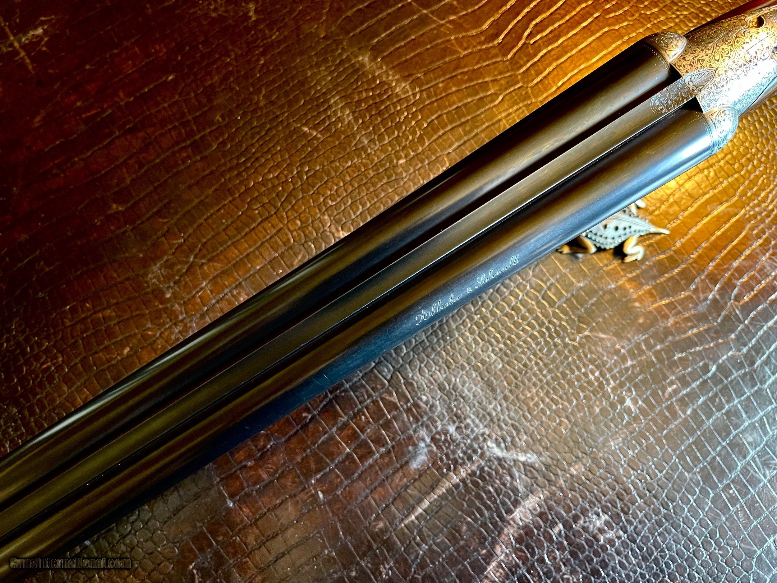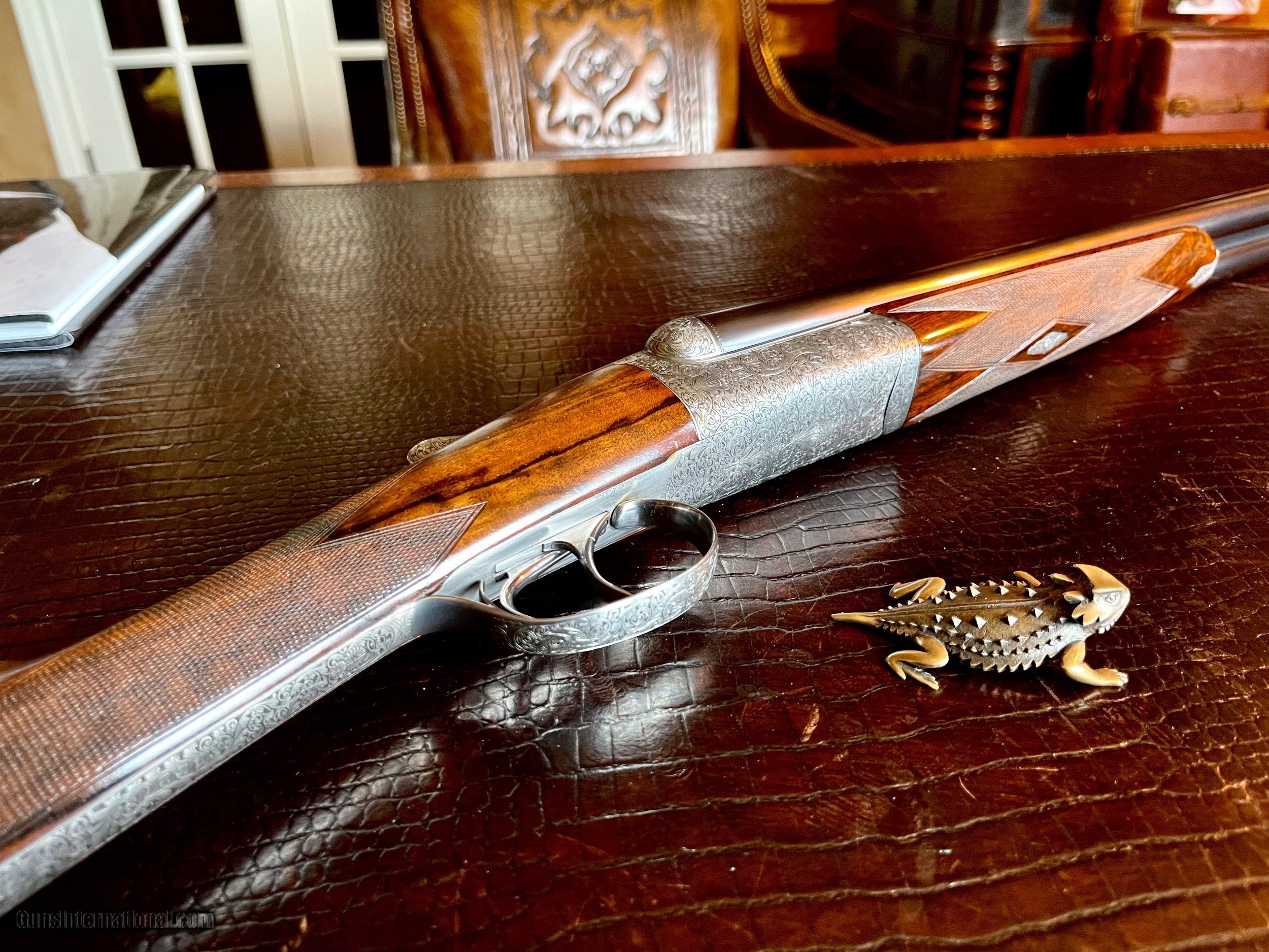 SOLD Shotgun Gauge: 20 Gauge Manufacturer: Famars Abbiatico & Salvinelli Model: Zeus Round Body Serial Number: 1227 Barrel Length: 27 3/4” Chambers: 2 3/4” Ejectors: Auto Timed Crisp Condition: High Condition Metal Condition: High Condition Wood Condition: Minor Field Use Stock: English Straight Stock Comb: 1 9/16” Stock Heel: 2 3/8” Stock Cast: Slight Right Hand Fore End: Splinter Butt Pad: Checkered Butt LOP: 14 1/2” to front trigger Rib: Concave game rib Finish: Original factory hand rubbed oil Weight: 5 lbs 14 ozs Choke Left: Improved Cylinder Choke Right: Skeet Engraving: Hassa Engraved Italian Scroll |