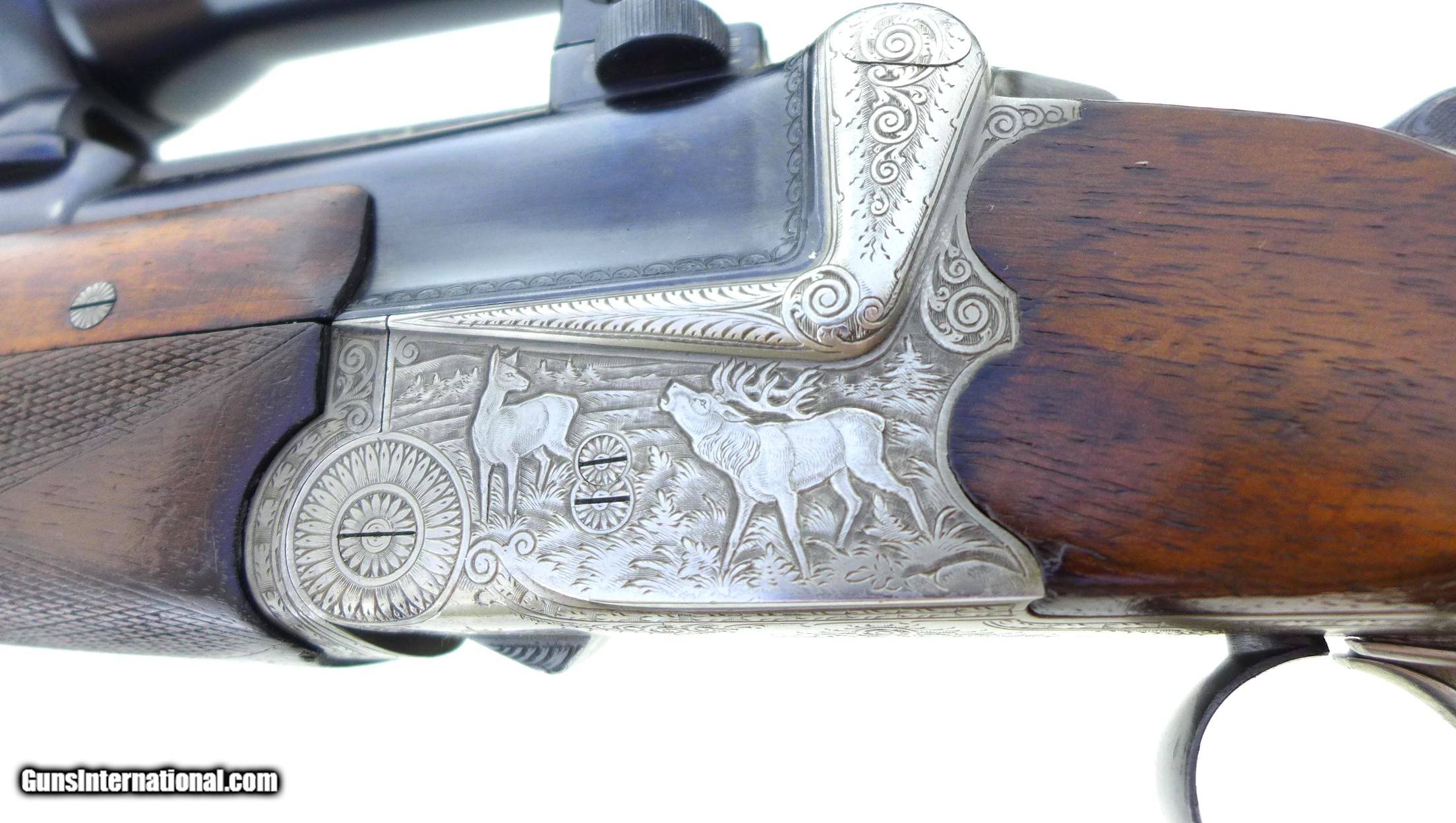Description: AUGUSTUS FINE ANTIQUITIES GmbH SWITZERLAND VINTAGE 1950 DATED ANTON SODIA, FERLACH AUSTRIA AND HAMMERL, LENZBURG SWITZERLAND GUN SET. 650MM COMBINATION GUN BARREL IN 8X57 IRS AND 12GA 2 3/4" ! VG BORE CONDITION, GERMAN W. KAUFMANN 4X SCOPE IN GOOD CONDITION ON SUHL TYPE MOUNT. OAL OF COMBINATION GUN SETUP=1075MM, WEIGHT WITH SCOPE=3.75KG, CHOKE=EF. 700MM O/U SHOTGUN BARREL, 12GA 2 3/4", VG BORE CONDITION, OAL OF O/U SETUP=1130MM, WEIGHT=2.95KG, H. OVER COMB=41MM, H. OVER HEEL=73MM. BOXLOCK WITH DOUBLE KERSTEN, EJECTOR AND AUTOMATIC SAFETY. FURTER (IN) OLTEN RETAILERS NAME ON BARREL, OWNERS CARTOUCHE NEAR BOTTOM SWIVEL. NICE FANCY WALNUT SOCK IN GOOD CONDITION. ABOUT 90%+ BLUE METAL FINISH, COIN FINISHED RECEIVER WITH GOOD QUALITY HUNTING AND FLORAL SCROLL ENGRAVING ! FITTED CANVAS & LEATHER CASE OF LATER DATE, COMPLETE WITH BRADED LEATHER SLING AND TWO 12GA SNAP CAPS. *** A CLASSIC FERLACH GUN MADE IN COOPERATION WITH HAMMERLI *** **PRICELESS OLD WORLD CRAFTSMANSHIP** *** FREE EXPORT/IMPORT & CONTINENTAL US SHIPPING !!! *** MY US IMPORTER MMB IMPORTS LLC IS GOING TO COLLECT ALL FUNDS FOR THIS TRANSACTION. CREDIT CARDS (+ 3% charge), USPS M.O. PAYMENTS AND CASHIER'S CHECKS WELCOME! By buying this item, you acknowledge and agree to the following: a. you have reviewed the description and photos provided; b. you have asked any and all questions PRIOR to purchase; c. you have used your knowledge and experience in making this purchase decision d. you understand the item may be import marked and avarage import time is 8-10 weeks; e. you understand that the described item is being sold "as is" and that this sale is final with no returns or refunds. PLEASE NOTE: It is the responsibility of the buyer to know and abide by the Gun Laws in your State ! SOLD Curio/Relic: Yes |