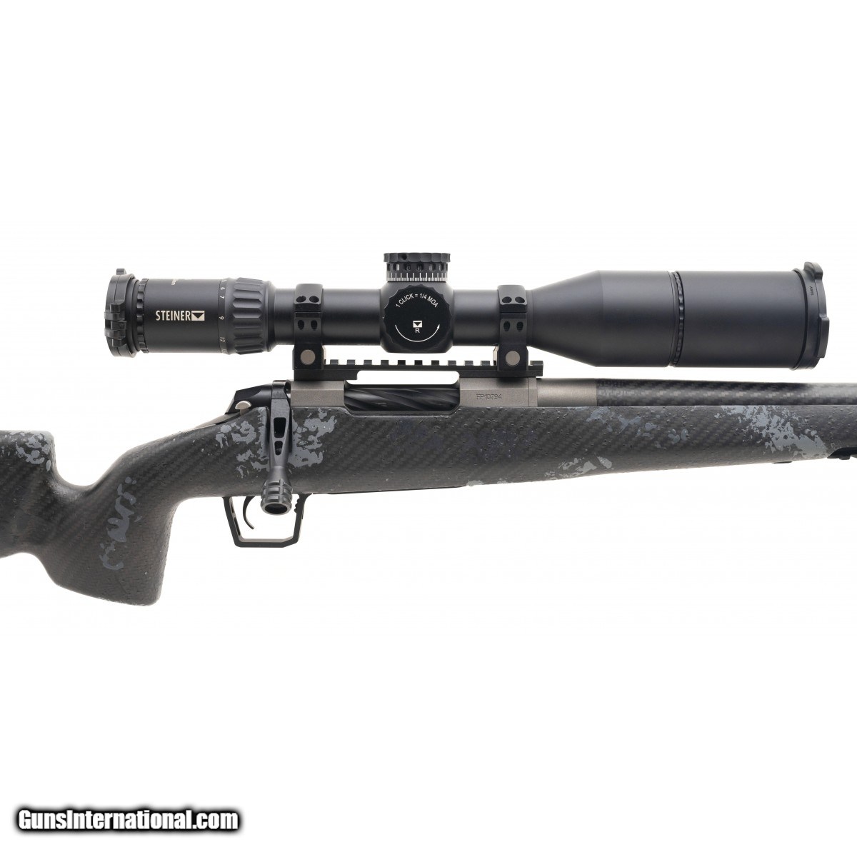 Description: " Premium lightweight hunting rifle with 24"" carbon fiber barrel, fluted bolt. A package deal with a Steiner T5Xi 3-15x scope on Night Force rings and 20 MOA rail, Magpul adjustable bi-pod, and muzzle brake. NEW. SOLD |