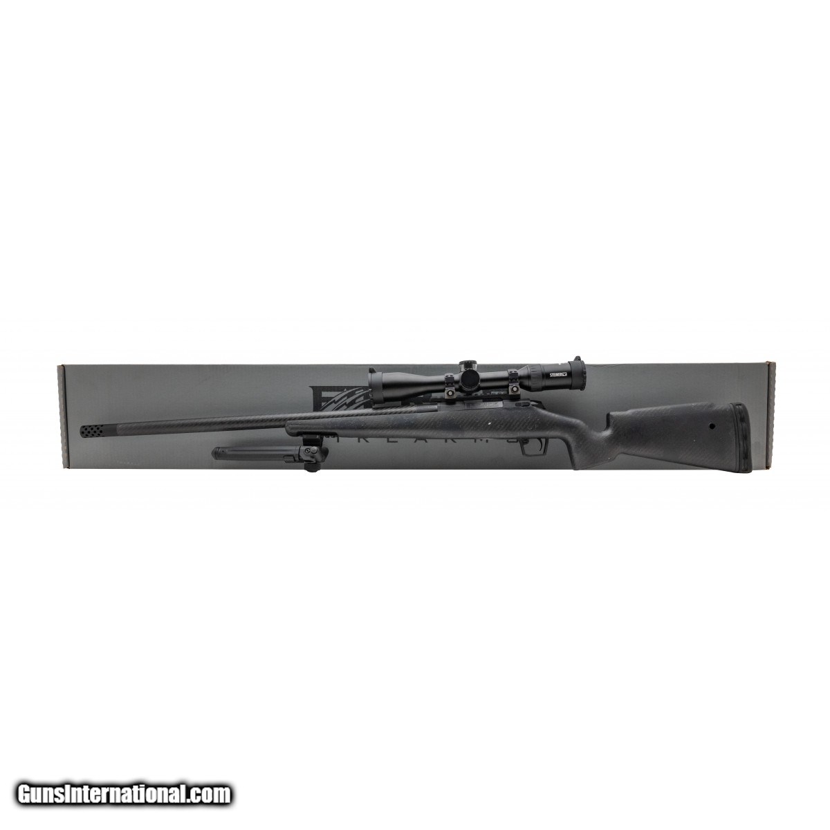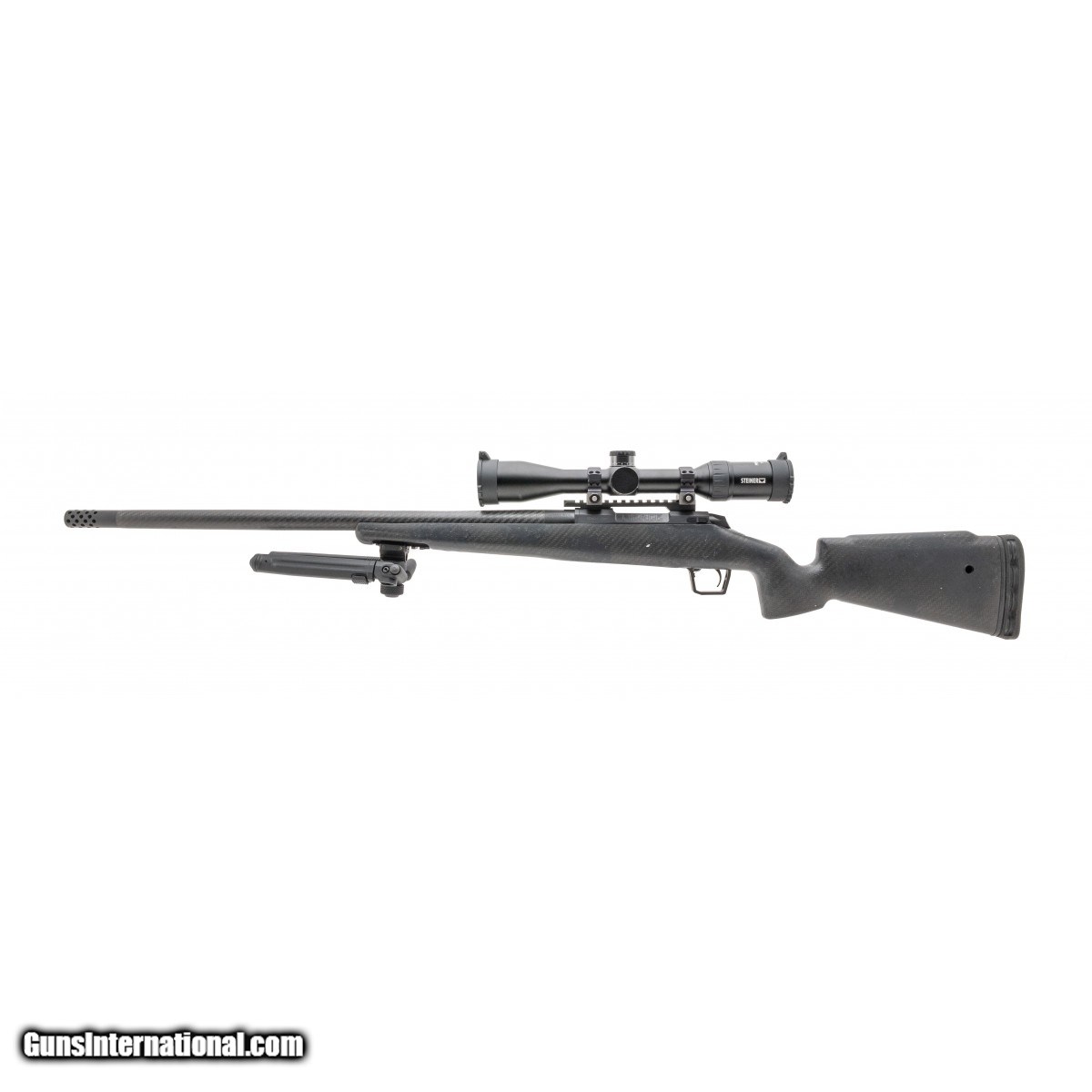 Premium lightweight hunting rifle with a 24"" carbon fiber barrel, fluted bolt. Package deal with a Steiner Predator 8 2-16x scope on Night Force rings and 20 MOA rail, Magpul adjustable bi-pod, and muzzle brake. NEW.