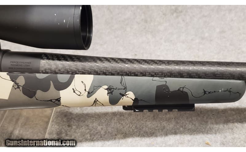 Description: The FIERCE CT EDGE has been the flagship rifle since Fierce began nearly 10 years ago. The CT EDGE combines all of the best Fierce components to secure the title of the Lightest, Most Deadly Accurate Rifle… Ever CT EDGE FEATURES: Titanium Fierce Triad 3-lug action70 degree bolt throw | unobstructed bolt cycle when shooting with an oversized scope Wire EDM precision cut raceways | tightest machined tolerances for accuracy and lock up 3-Position Safety | Extract cartridges while rifle is in safe position BIX'N ANDY trigger | match grade adjustable trigger (1-3 lbs.) Detachable Drop Box Magazine Fierce C3 Carbon Fiber barrel | Match grade, hand lapped barrel liner, stress relief treated C3 Carbon Edge stock | Carbon Fiber Monte Carlo design | Solid carbon bedding system At Fierce there is no compromise for quality and performance. It is time to get Fierce and experience the difference. .300 Winchester Magnum SOLD Chambers: .300 Winchester Magnum Metal Condition: Very Good Wood Condition: Very Good Bore Condition: Very Good Barrels: 28" Carbon Fiber Barrel Stock Dimensions: 14" LOP Fore End: Very Good Butt Pad: Very Good Weight: 8lbs 12oz Sights: Swarovski Z6i 2.5-15x44MM Scope Item Location: Berlin |