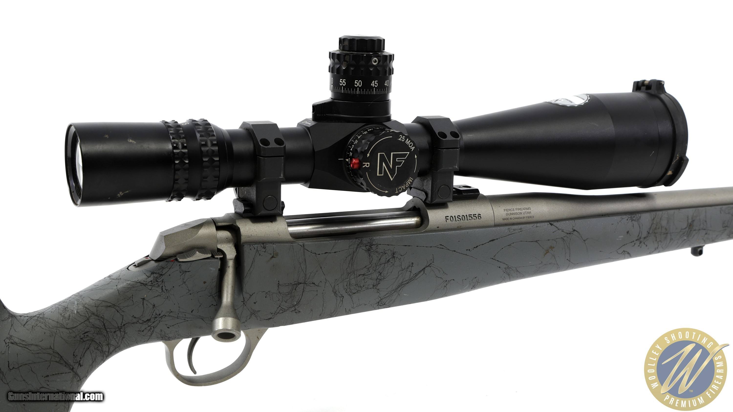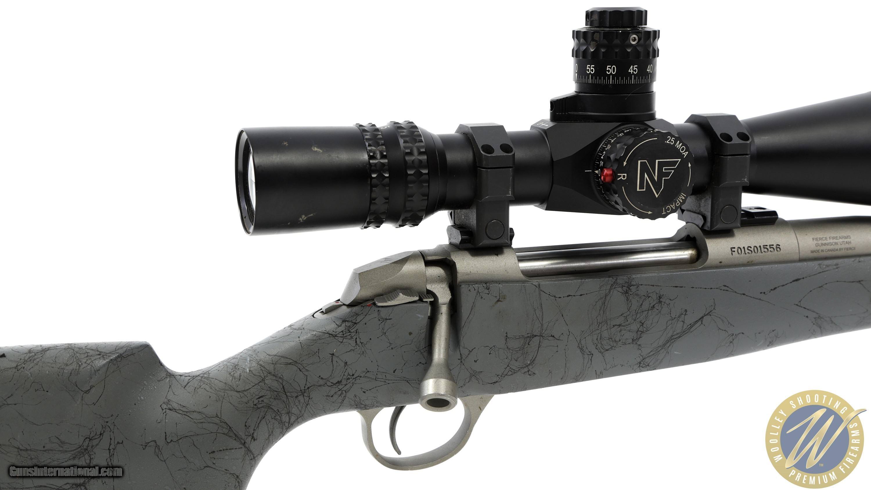 Description: The Fierce Fury .300 Winchester Magnum represents American precision bolt-action engineering for long-range hunting and tactical applications, combining proprietary Triad three-lug bolt system with match-grade stainless steel barrel and premium Nightforce BEAST optics creating exceptional accuracy and performance. Designed for shooters demanding maximum precision and versatility, this Fierce Fury delivers sub-MOA accuracy with free-floated barrel and titanium muzzle brake—now available preowned with premium Nightforce BEAST 5-25x56 optic mounted and ready for immediate long-range performance. Specific Gun Description - Preowned Condition Condition Assessment: This Fierce Fury .300 Winchester Magnum is preowned and shows field use with visible scuff and scratches along syntheticstock, receiver, and Nightforce BEAST scope tube indicating responsible field hunting and shooting use. Despite cosmetic wear, rifle remains in perfect working order with all mechanical functions operating flawlessly. Bolt operation is smooth with consistent lockup. Trigger breaks clean and crisp. Bore shows no evidence of pitting or corrosion with chrome-lined stainless steel construction maintaining accuracy potential. Action cycles smoothly with proper headspace. Nightforce BEAST 5-25x56 scope remains fully functional with clear optics and reliable adjustments despite external scratches on tube. All mechanical components retain factory precision and sub-MOA accuracy capability. Complete with magazine and ready for immediate field use—excellent value for preowned precision rifle with premium optics. Condition: Preowned - Field Use with Cosmetic Wear, Perfect Working Order Model: Fury Manufacturer: Fierce Firearms Caliber: .300 Winchester Magnum Barrel Length: 26" Action: Bolt Action Configuration: Right-Handed Stock Type: SyntheticStock Optic: Nightforce BEAST 5-25x56 F1 (Mounted and Included) Special Feature: Fierce Triad Three-Lug Bolt System with Sub-MOA Accuracy Guarantee and Premium Nightforce BEAST Optic! Included: AICS-pattern detachable box magazine (4-round capacity), Factory test target, Owner's manual, Nightforce BEAST 5-25x56 scope mounted with rings and base Measurements: • Length of Pull: 13.75" • Drop at Comb: 1.5" • Drop at Heel: 0.75" • Overall Length: 46.5" • Weight: 7.25 lbs (unloaded, without optic) Specifications • Caliber: .300 Winchester Magnum • Action: Bolt Action (Fierce Triad three-lug system with 30° bolt lift) • Barrel Length: 26" • Twist Rate: 1:10" • Barrel Contour: Sporter profile, fluted • Barrel Material: Match-grade stainless steel • Barrel Finish: Matte stainless steel • Muzzle: Threaded M13x.75 with factory titanium muzzle brake • Chamber: .300 Winchester Magnum • Magazine Type: AICS-pattern detachable box magazine • Magazine Capacity: 4 rounds (4+1 total) • Trigger: Fierce 4T adjustable trigger, ~3.5 lbs pull weight • Safety: Three-position wing safety (Fire / Safe-Bolt Lock / Bolt & Trigger Lock) • Stock Material: Reinforced polymer SyntheticStock • Stock Finish: Matte black with gray webbing pattern, fully glass-bedded • Receiver Finish: Matte stainless steel • Optic Mounted: Nightforce BEAST 5-25x56 F1 with 34mm tube, first focal plane, side parallax adjustment, illuminated reticle, exposed zero-resettable turrets, 0.1 MIL adjustments • Scope Condition: Functional with scratches on tube exterior • Overall Length: 46.5" • Weight: 7.25 lbs (rifle only, unloaded) • Accuracy Guarantee: Sub-MOA (0.5 MOA at 100 yards with factory match ammunition) This preowned Fierce Fury .300 Winchester Magnum with 26" barrel represents American precision bolt-action engineering combining proprietary Fierce Triad three-lug bolt system with 30-degree bolt lift ensuring consistent lockup and smooth cycling ideal for prone and bench-rest shooting positions, 26-inch match-grade stainless steel fluted barrel with matte finish and 1:10 twist rate optimized for long-range performance allowing complete powder burn in magnum cartridges delivering muzzle velocities exceeding 3,000 fps with 180-200 grain bullets enabling effective engagement beyond 1,000 yards, M13x.75 threaded muzzle with factory-installed titanium muzzle brake significantly mitigating .300 Win Mag recoil making this one of most shooter-friendly platforms in its class while allowing future suppressor attachment, reinforced polymer SyntheticStock with textured webbing pattern providing superior grip and environmental resistance withstanding impacts, moisture, and temperature extremes with fully glass-bedded action ensuring consistency and sub-MOA accuracy potential (13.75" LOP, 1.5" drop at comb, 0.75" drop at heel) offering neutral fit for most adult shooters especially when paired with high-magnification optics, premium Nightforce BEAST 5-25x56 F1 riflescope mounted and included featuring first focal plane optics with 5-25x magnification range supporting target acquisition from medium to ultra-long distances with 34mm tube diameter, zero-resettable turrets with 0.1 MIL adjustments, side parallax adjustment with integrated illumination, and excellent optical clarity under low-light conditions engineered for extreme precision in PRS competitions, tactical applications, and alpine hunting despite external scratches on scope tube remaining fully functional with clear glass and reliable adjustments, Fierce 4T adjustable trigger with approximately 3.5 lbs pull weight allowing user customization for pull weight and creep, three-position wing safety providing additional security for safe bolt manipulation during transport and storage, AICS-pattern detachable box magazine with 4-round capacity offering compatibility with premium aftermarket magazines from Accuracy International, Magpul, or Area 419, weight of 7.25 lbs remaining portable for hunting applications while heavy enough to reduce felt recoil when paired with muzzle brake, factory sub-MOA accuracy guarantee with test
