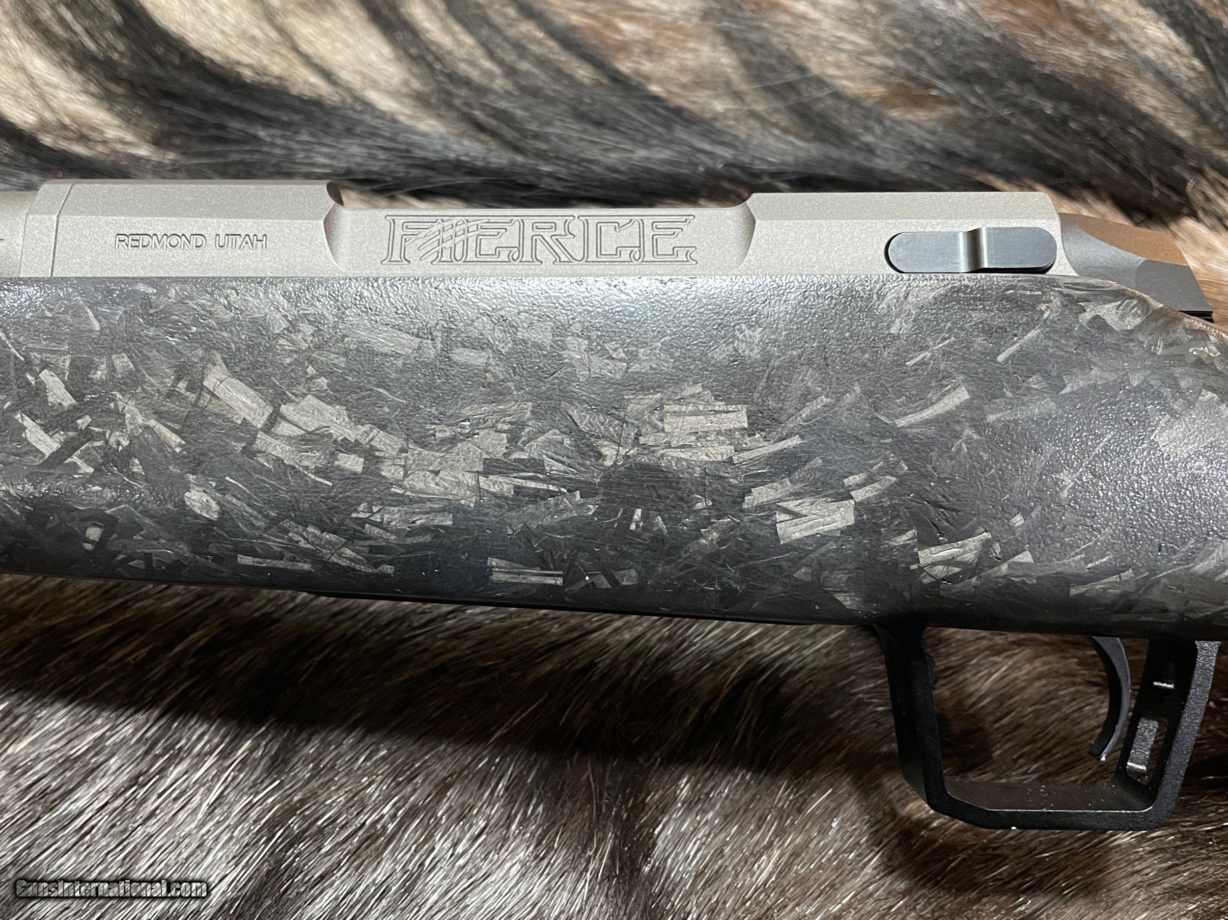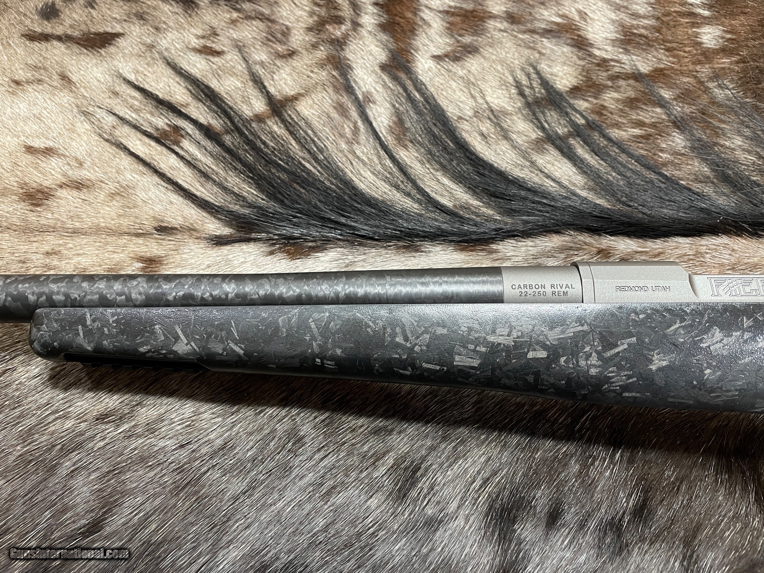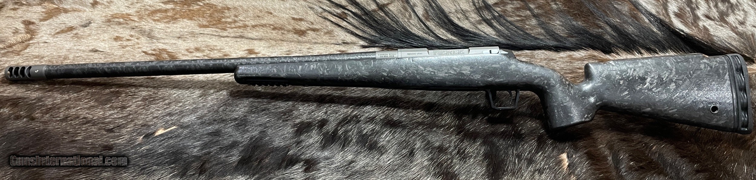 Description: NEW JD OUTFITTERS EXCLUSIVE - FIERCE FIREARMS CARBON RIVAL RIFLE IN 22-250 REMINGTON WITH CHOPPED CARBON FIBER STOCK AND NIX SIDE-PORT BRAKE - LAYAWAY AVAILABLE. THIS LIMITED PRODUCTION FIERCE RIFLE COMES WITH THE "CHOPPED CARBON FIBER" STOCK AND SPECIALLY DESIGNED FLOORPLATE ENGRAVING. THIS UNIQUE RIFLE IS MADE EXCLUSIVELY FOR, AND SOLD ONLY, BY JD OUTFITTERS. GET YOURS WHILE YOU CAN! FREE AFRICAN SAFARI WITH KUCHE SAFARIS (: KUCHE.CO.ZA) INCLUDED WITH THIS RIFLE! SAFARI IS FOR 1-HUNTER / 5-DAYS / 3-ANIMALS (IMPALA, BLESBUCK, WARTHOG). SAFARI IS CUSTOMIZABLE WITH ADDITIONAL DAYS AND ANIMALS AVAILABLE. THE CERTIFICATE IS GOOD FOR 3-YEARS FROM DATE OF PURCHASE AND WILL BE EMAILED TO YOU. NOTE: THE SAFARI IS FREE AND DOES NOT ADD ANY COST TO THE RIFLE. BUY A SCOPE AND RINGS/BASES FROM JD OUTFITTERS AND RECEIVE FREE MOUNTING. FEATURES OF THIS GREAT AMERICAN MADE BOLT ACTION RIFLE INCLUDE: