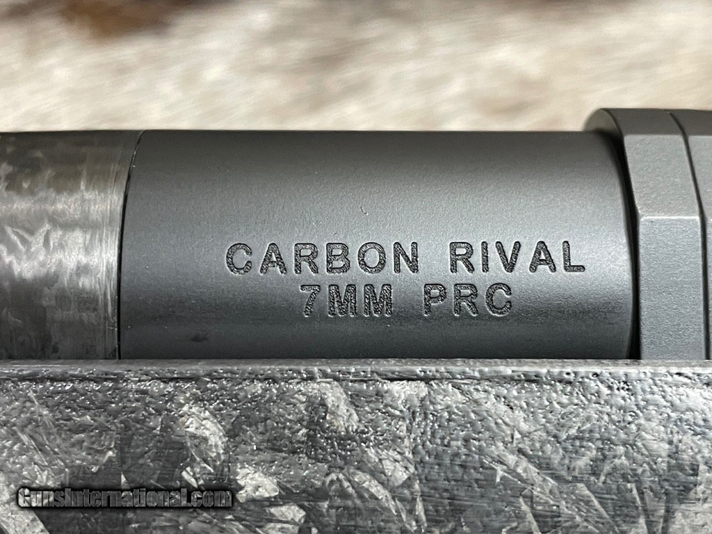Description: NEW JD OUTFITTERS EXCLUSIVE - FIERCE FIREARMS CARBON RIVAL RIFLE IN 7mm PRC WITH CHOPPED CARBON FIBER STOCK - LAYAWAY AVAILABLE. THIS LIMITED PRODUCTION FIERCE RIFLE COMES WITH A CUSTOM-DESIGNED "CHOPPED CARBON FIBER" STOCK AND FLOORPLATE ENGRAVING. THIS UNIQUE RIFLE IS MADE EXCLUSIVELY FOR, AND SOLD ONLY, BY JD OUTFITTERS. GET YOURS WHILE YOU CAN! FREE AFRICAN SAFARI WITH KUCHE SAFARIS (: KUCHE.CO.ZA) INCLUDED WITH THIS RIFLE! SAFARI IS FOR 1-HUNTER / 5-DAYS / 3-ANIMALS (IMPALA, BLESBUCK, WARTHOG). SAFARI IS CUSTOMIZABLE WITH ADDITIONAL DAYS AND ANIMALS AVAILABLE. THE CERTIFICATE IS GOOD FOR 3-YEARS FROM DATE OF PURCHASE AND WILL BE EMAILED TO YOU. NOTE: THE SAFARI IS FREE AND DOES NOT ADD ANY COST TO THE RIFLE. BUY A SCOPE AND RINGS/BASES FROM JD OUTFITTERS AND RECEIVE FREE MOUNTING. FEATURES OF THIS GREAT AMERICAN MADE BOLT ACTION RIFLE INCLUDE: