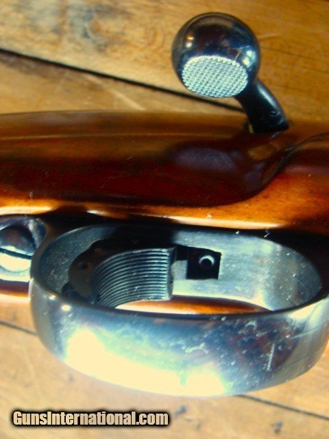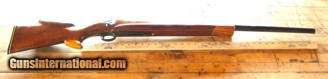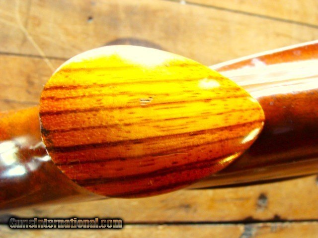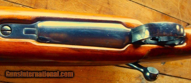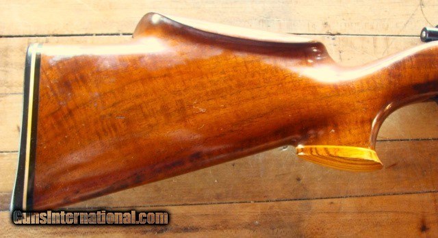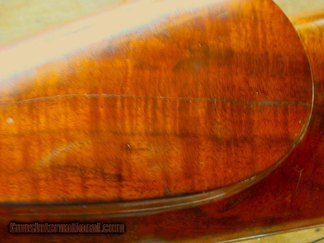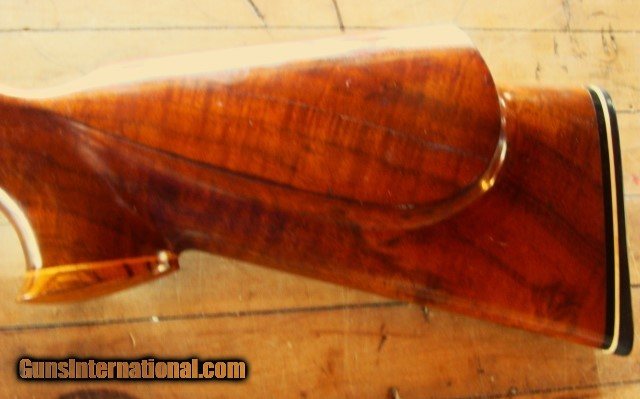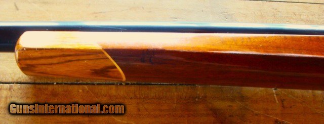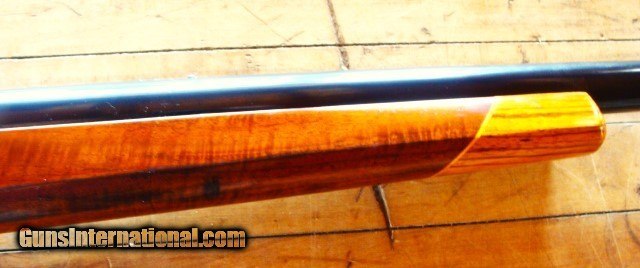 Description: 1960's Interarms Mark X custom rifle. Mauser style action, drilled and tapped for scope bases with a low thumb safety (see photos), adjustable target trigger and wide trigger shoe. Heavy varmint barrel with a nice bore and royal blue finish. At the sale they said the stock was either Caucasian walnut or quilted maple and the flared pistol grip and nose cap were African Zebra wood. The fore-stock has a full length shadow line and a roll over cheek piece with a Pachmayer White Line Rifle Pad. The stock has no chips, cracks or deep gouges; however, there are a few handling marks and one finish scratch across the the rollover cheek piece(see photos). At the sale they said they could not date this rifle but thought it was made in the 1960's. This is a beautiful rifle made to be extremally accurate; however, I can not verify these statements; therefore, I am offering this rifle with a 100% satisfaction guarantee. If it fails to live up to your expectations in any way, return it for a full and speedy refund including your return shipping (see my feedback). We trade guns. No reserve. Cashiers check or money order only. I do not recommend firing any weapon until it has been thoroughly examined by a certified gunsmith. Sorry no California sales. Ship to FFL holder only. Shipping $35.00 which includes a tracking number emailed to you. Insurance is optional. Missouri residents pay 8.45% sales tax where applicable. SOLD |