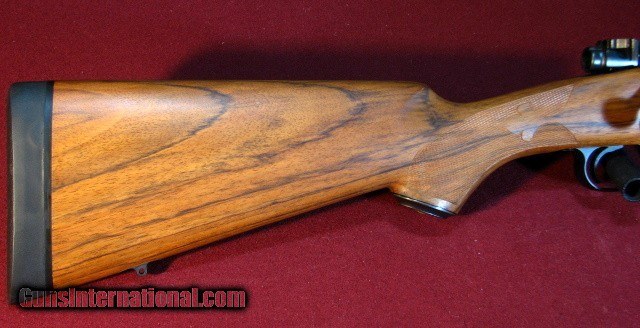 Description: Dakota 76 in .22-250 with a 23" sightless barrel. Bore as new. Receiver with jeweled bolt and bolt knob upgrade with four checkered panels and rosette engraved tip. Stocked in American Classic style with shadow line cheekpiece, steel Dakota logo grip cap, two screw inletted swivel studs, and ebony forend tip. Wood quality upgrade and checkering upgrade with Fleur-de-Lis checkering pattern. 14" LOP to a Decelerator pad. 7lb 3oz This piece appears to be new and unfired. No box. Priced right. What a neat little rifle! SOLD |