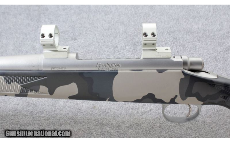 Description: This Remington 700 ADL 7mm Rem. Magnum has a lightened bolt body, modified bolt handle, the actioned tuned and the barrel crowned. The stock has Kuiu Visa camo. It comes with Talley rings. This is a very nice looking setup and would be a great rifle for hunting big game in wide open spaces. SOLD Manufacturer: 2011 Caliber Info: 7mm Rem. Mag. Metal Condition: Excellent Bore Condition: Excellent Barrels: 24 inch stainless barrel with 1:9 1/8 inch twist Stock: Synthetic pistol grip stock with cheek piece Stock Dimensions: 13 1/2 in. LOP Butt Pad: Remington rubber pad Weight: 7 lbs. 6 oz. with rings Sights: Drilled and tapped for scope mounting with Talley One piece rings Item Location: Lehi, UT |
