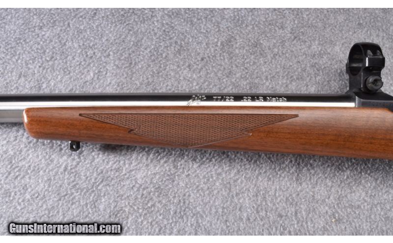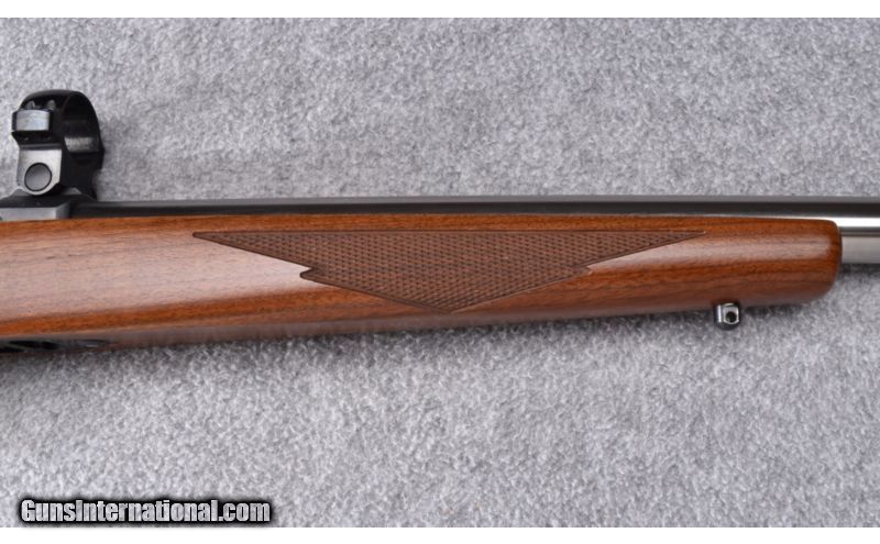 Description: Wood shows a couple faint storage marks. Metal is excellent with an excellent bore. Fitted with a Lilja heavy stainless match barrel and is complete with Ruger rings. No box. SOLD Manufacturer: S/N 703-51XXX Caliber Info: .22 LR Metal Condition: Excellent Wood Condition: Excellent Bore Condition: Excellent Barrels: 18 1/2" Lilja Heavy Stainless Match Barrel Triggers: Factory Stock: Checkered Walnut Pistol Grip Stock Dimensions: 13 1/2" LOP Fore End: Checkered Walnut Butt Pad: Black Rubber Weight: 7 1/2 LB Sights: None - Ruger Rings Included Item Location: Wheeling, WV |