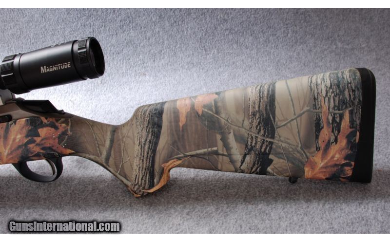 Description: SOLD Caliber Info: .22-250 Rem. Metal Condition: Insignificant handling marks Bore Condition: Bright, clean with sharp rifling Barrels: 22" Stainless, Fluted Stock: Synthetic. Realtree Hardwoods Camo Pattern. Stock Dimensions: 13 5/8" LOP Fore End: Synthetic Butt Pad: Rubber Weight: 7 Lbs. 2 Oz. Sights: Cabela's Magnitude 3-10X40 Scope Extras: Box, papers Item Location: Billings, MT |