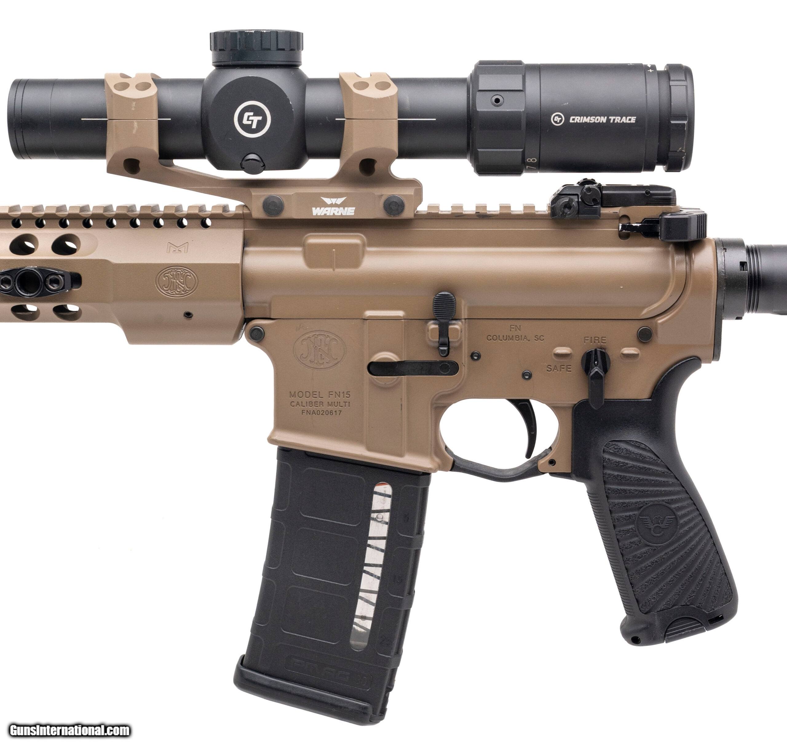 Description: "SN: FNA020617. Modern production, 5.56 NATO with a 16"" barrel w/Surefire muzzle brake & Warden blast regulator. Bore is bright with strong rifling. Semi-auto tactical rifle with a Crimson Trace 1-8x28mm scope on a Warne riser, Magpul MBUS pro flip-up iron sights, and a Wilson Combat grip. Very good condition overall. Price: $2,095.00 Contact Seller |