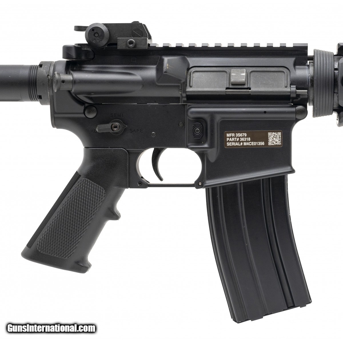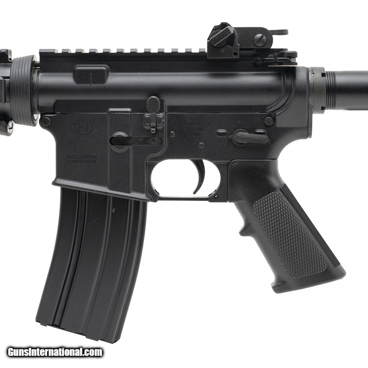 Description: " SN: M4CE01356. Modern production. 5.56 with a 14.7"" pin & welded barrel. Bore is excellent. FN replica of the M4 carbine. Finish is in very good condition with light wear noted. Rifle comes with a broom handle vertical grip, and knights armament rail covers. Overall very good condition. SOLD |
