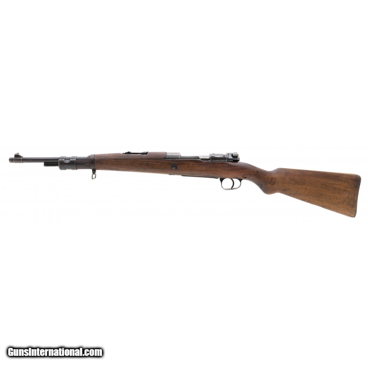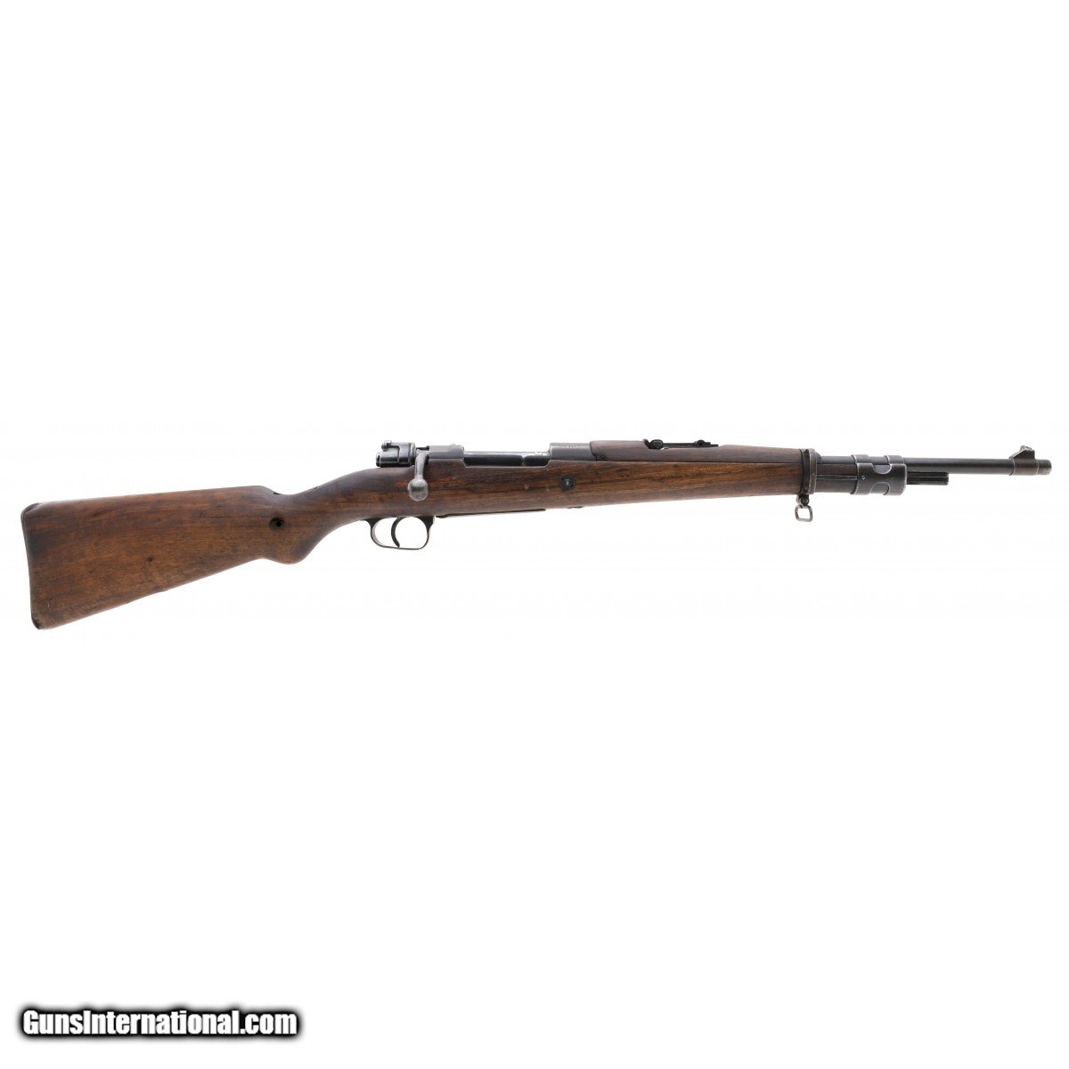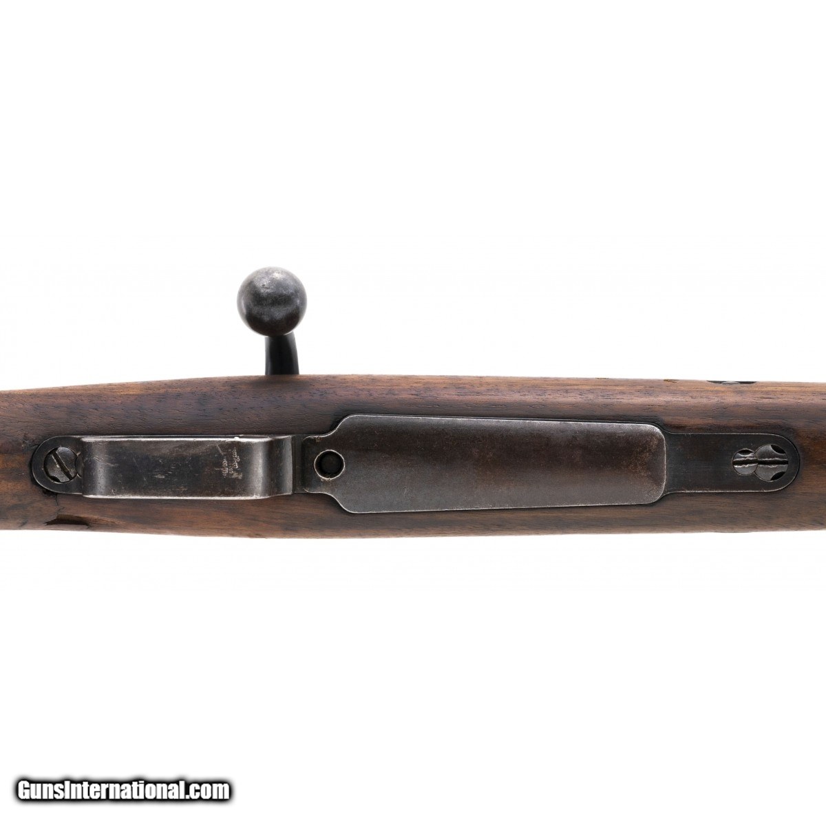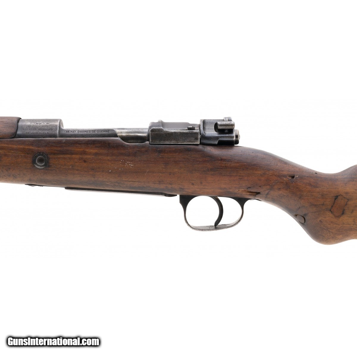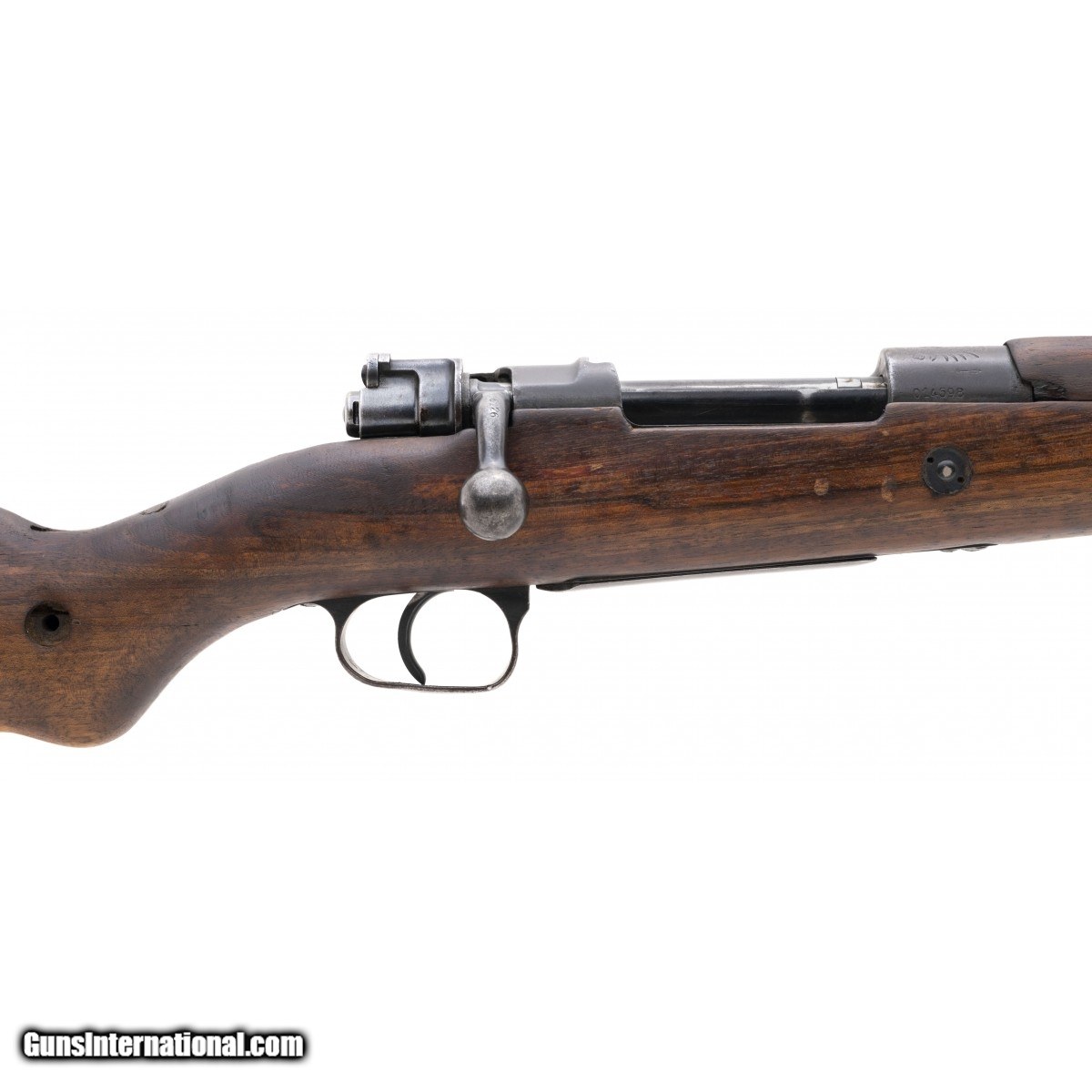 Description: " SN: 014598. Venezuelan military Mauser 7mm rifle in fair condition. Dark bore, mismatched bolt, small crack in stock. SOLD |