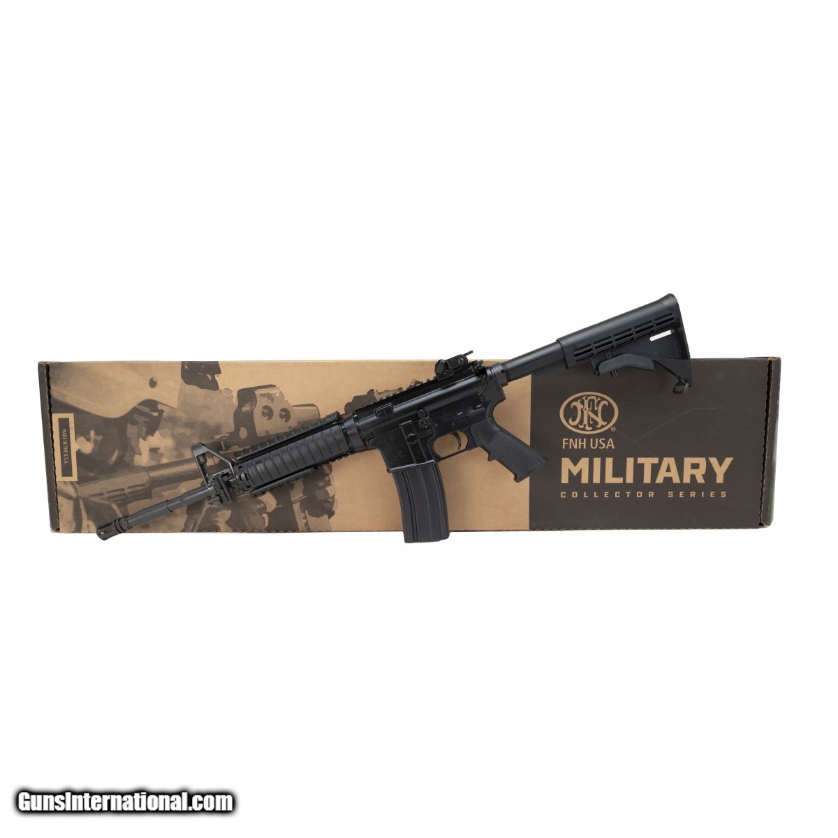 FN America, FN15 M4, Military Collectors Series, Semi-automatic Rifle, 223 Rem/556NATO, 14.7"" Barrel (16"" OAL with Pinned Brake), 1:7 Twist, Carbine Length Gas System, Black Finish, 6 Position Collapsible Stock, 30Rd, Knights Armament M4 Carbine Rail Adapter System (RAS), Vertical Grip Included. New. UPC:845737006211