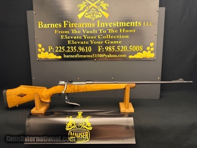 Description: FN 270 WINCHESTER WITH MAUSER ACTION IN VERY GOOD CONDITION LIGHT HANDLING MARKS ON MAPLE STOCK BLUING IS IN VERY GOOD CONDITION FROM WHAT I CAN SEE THIS IS A VERY RARE RIFLE WITH MAPLE STOCK AND INLAY WILL MAKE A GREAT ADDITION TO ANY COLLECTION OR EXCELLENT HUNTING RIFLE HAS A MUZZLE BREAK TO HELP REDUCE RECOIL PLEASE SEE PICS. Rifle Caliber: .270 Winchester Manufacturer: FN Model: MAUSER Serial Number: 30570 Barrel Length: 22 24 WITH BREAK Condition: VERY GOOD Metal Condition: VERY GOOD Wood Condition: VERY GOOD Bore Condition: EXCELLENT Action: MAUSER BOLT ACTION Stock: MAPLE Engraving: INLAY Optic: IRON SIGHTS & SCOPE MOUNT Price: $1,495.00 Shipping: $75.00 Contact Seller |