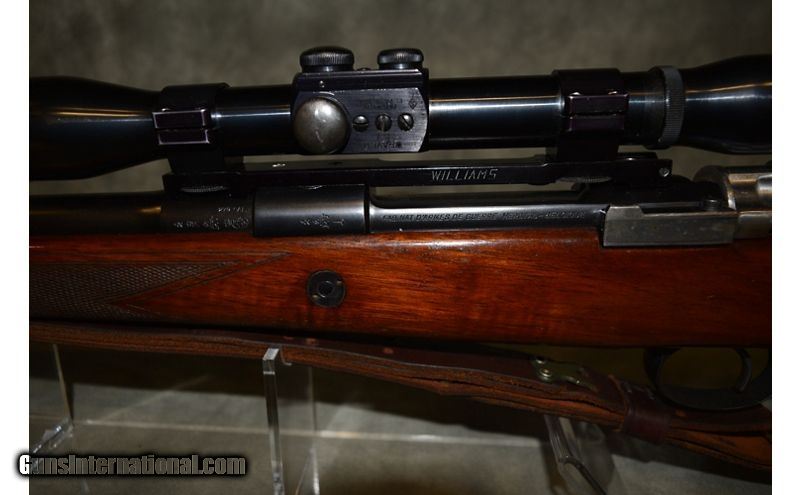 Description: FABRIQUE D'ARMS (FN) BELGIUM, SERIAL #8378 INDICATE LIKELY 1946-1948, FN MAUSER ACTION. HEAVEY LEATHER SLING .270 Winchester SOLD Chambers: .279Win Metal Condition: Excellent Wood Condition: Excellent Bore Condition: Excellent Barrels: 24 Sights: Weaver Scope Item Location: Chesterfield, MI |