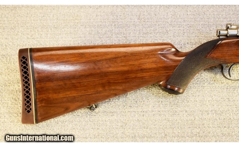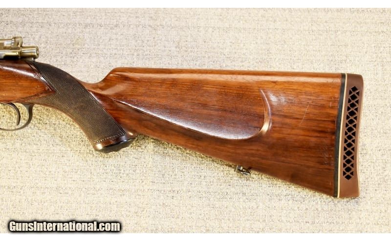 Description: This is a pre-owned Fabrique Nationale D'Armes Mauser action in .30-06 Springfield with a 24-inch barrel .30-06 Springfield SOLD Metal Condition: Very good overall with a few small scratches and scattered freckling Wood Condition: "Good overall condition showing some handling wear including small scratches, dents and scrapes Bore Condition: Clean with good lands Barrels: 24 Stock Dimensions: 14 1/4" LOP Fore End: Checkered walnut Butt Pad: Ventilated Pachmayr pad Weight: 7 Lbs. 6 Oz. Sights: "Hooded blade front, 3-position peep rear plus drilled and tapped for scope mounts Item Location: Glendale, AZ |