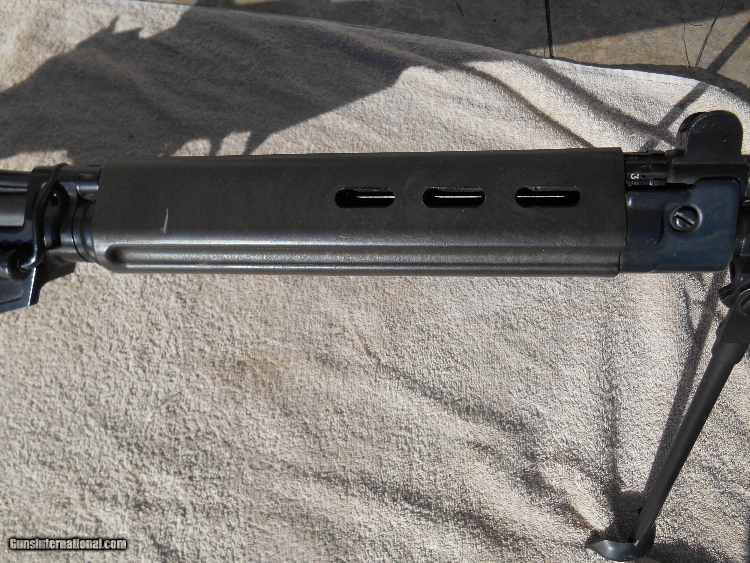 Description: This G-Series FAL is in very good condition with only minimal handling and storage marks to the wood and metal. The bore is bright and the rifling is sharp. It has been fired, but not a lot. The bipod is a factory installation. This series is highly sought after by collectors. but this one can be fired without worrying about what doing so would do to its collectibility. Please review the photos, as they are an integral part of the description. Please feel free to ask questions and/or request additional photos. FFL required to ship to. Buyer to pay shipping as well as insurance, if requested. If returned within the 3-day inspection period required by Guns International, this rifle must be sent back unfired and in the same condition as it was is in when shipped to the buyer. The return shipment must be paid for by the buyer and the the package insured for the full amount of the original purchase price. As always, it is recommended that used firearms should be safety inspected prior to firing a used firearm. Thanks for looking. SOLD Curio/Relic: Yes Rifle Caliber: .308 Winchester Manufacturer: Fabrique Nationale Model: FAL G-Series Barrel Length: 24 Condition: Very Good Weight: 14 pounds Sights: Fixed |