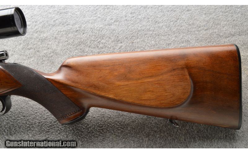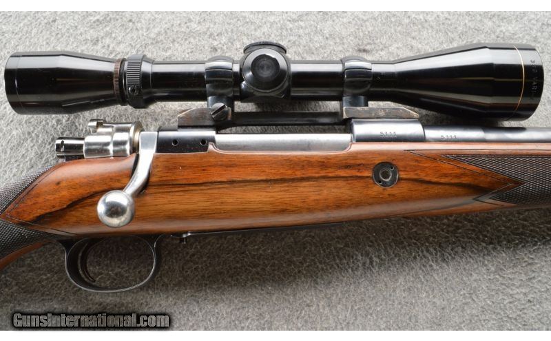 Description: This is a very nice and early FN Mauser Sporter De Luxe in .250-3000 Savage. The blue is in great condition with very little wear. The Walnut stock is checkered and carved as well as having a black grip cap and raised cheek. This fine rifle comes with a Leupold Veri-X II 3-9X40 rifle scope. The bolt face is clean and the rifle looks to have been fired very little if any.\ SOLD Manufacturer: SN# 51XX Early production Caliber Info: .250-3000 Savage. Chambers: Bolt action repeater. Metal Condition: Excellent. Wood Condition: Excellent with a small repair at the toe. Bore Condition: Bright and shiny. Barrels: 24 Inch blue with a front sight. Triggers: Single. Stock: Very nice walnut with a carved and checkered pistol grip with a black grip cap sling mounts and a raised cheek. Stock Dimensions: 13 1/2 inch LOP. Fore End: Matching walnut with a sling mount. Butt Pad: FN black butt plate. Weight: 9 Lbs 8 Oz as pictured with the scope. Sights: Leupold Veri-X II 3-9X40 rifle scope. Extras: Comes with the scope, scope base and rings. Item Location: Owatonna, MN |