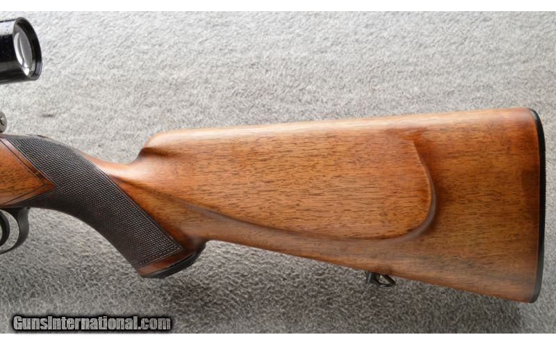 Description: This is a very nice F Mauser Sporter De Luxe in .257 Roberts in great condition with very little wear. The Walnut stock is checkered and carved as well as having a black grip cap and raised cheek. This fine rifle comes with a Leupold Veri-X IIc 4-12X40 AO scope. The bolt face is clean and the rifle looks to have been fired very little. SOLD Manufacturer: 1947-1963 Caliber Info: .257 Roberts Chambers: Bolt action repeater. Metal Condition: Like new. Wood Condition: Excellent. Bore Condition: Bright and shiny. Barrels: 24 Inch blue with a front sight. Triggers: Single. Stock: Very nice walnut with a carved and checkered pistol grip with a black grip cap, sling mounts and a raised cheek. Stock Dimensions: 13 5/8 Inch LOP. Fore End: Matching walnut with a sling mount. Butt Pad: FN black butt plate. Weight: 8 Lbs 9 Oz as pictured with the scope. Sights: Leupold Veri-X IIc 4-12X40 AO scope. Extras: Comes with the scope, scope base and rings. Item Location: Owatonna, MN |