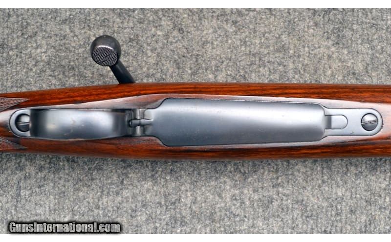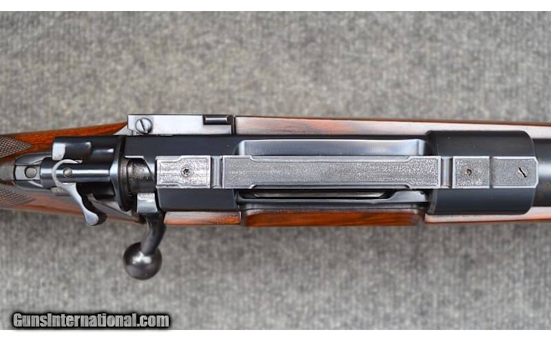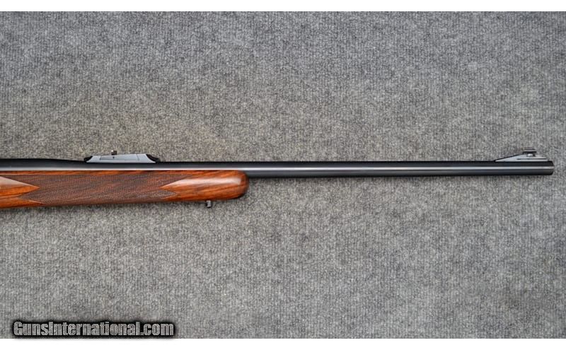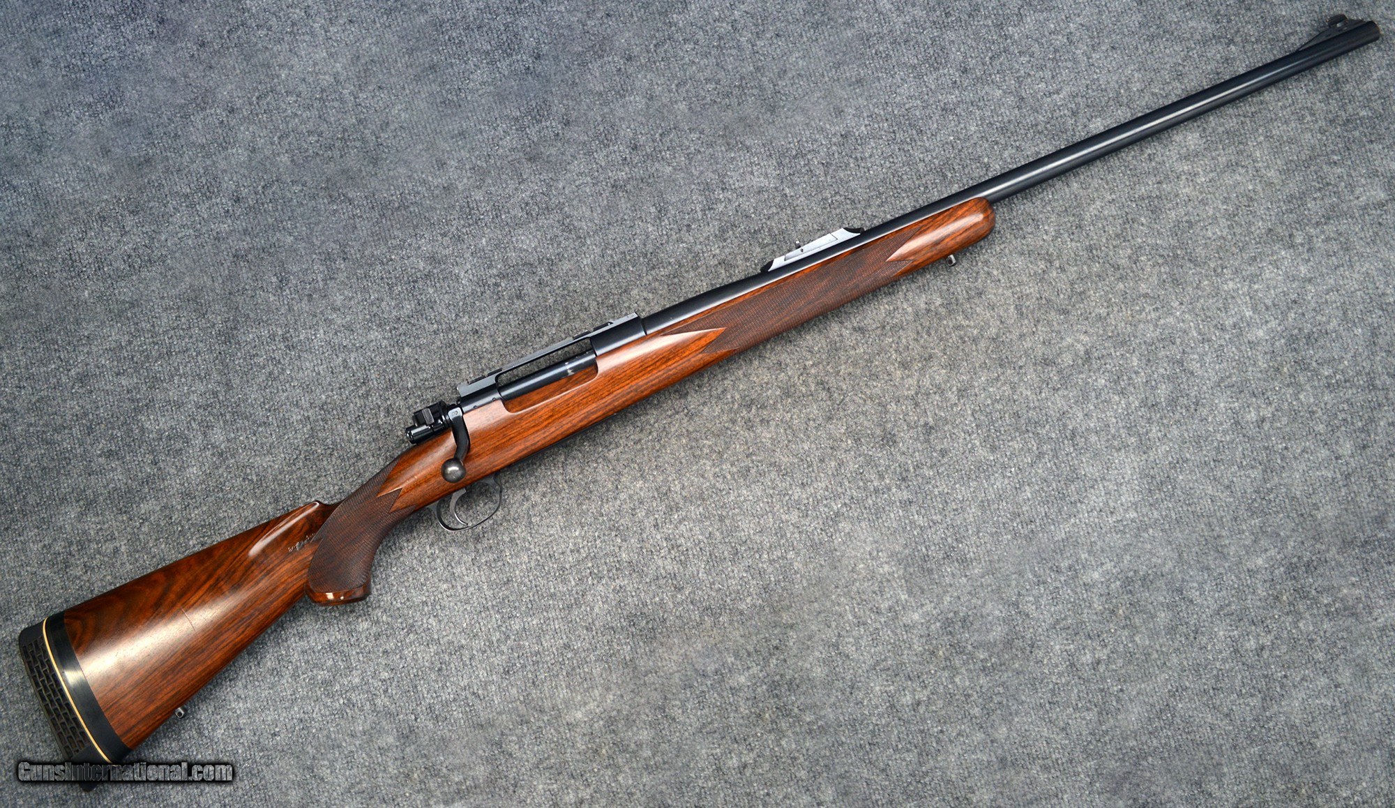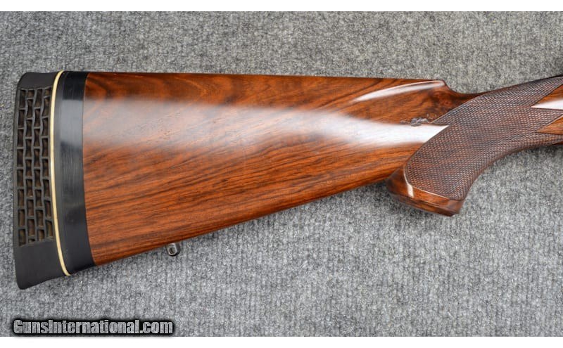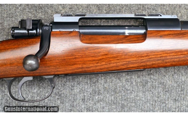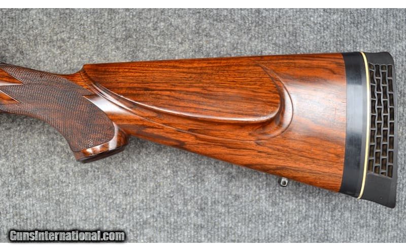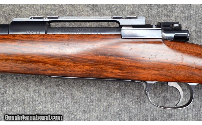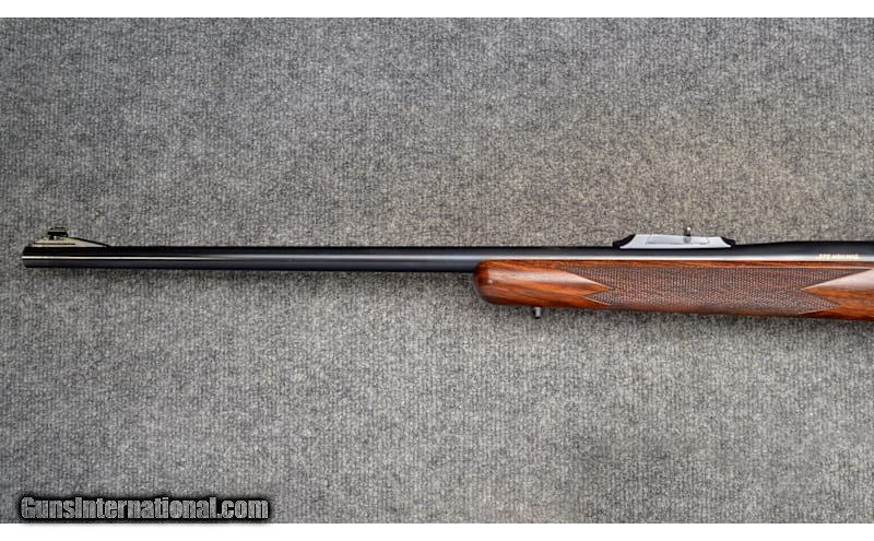Description: For your consideration, a FN 98 Mauser type custom sporting rifle chambered in .375 H&H Magnum. Sighting consists of a bronze beaded front blade and a windage and elevation adjustable rear leaf. The receiver is topped with a one-piece scope base of unknown make. The hand-checkered stock is appointed with a contrasting forend inset and grip cap, sling studs, a beaded cheekpiece, and a rubber pad with several LOP extensions. This piece is of Belgian manufacture. .375 H&H Magnum SOLD Metal Condition: Very Good Wood Condition: Very Good Bore Condition: Very Good+ Barrels: 26 Triggers: Serrated Face Stock Dimensions: 14.5" LOP Fore End: Checkered Butt Pad: Rubber Weight: 8.5 lbs Sights: Iron Sights Item Location: Hamburg, PA |