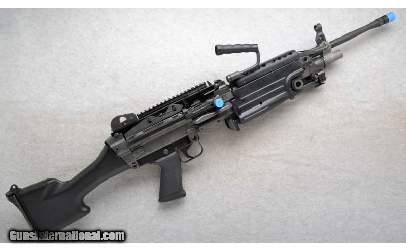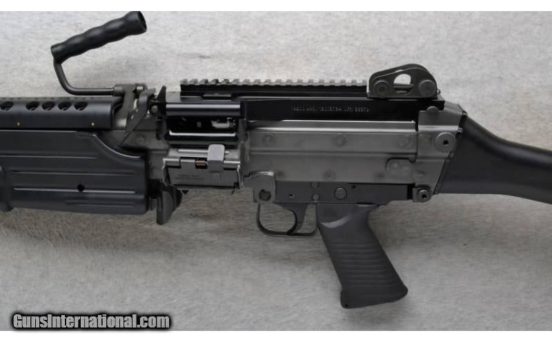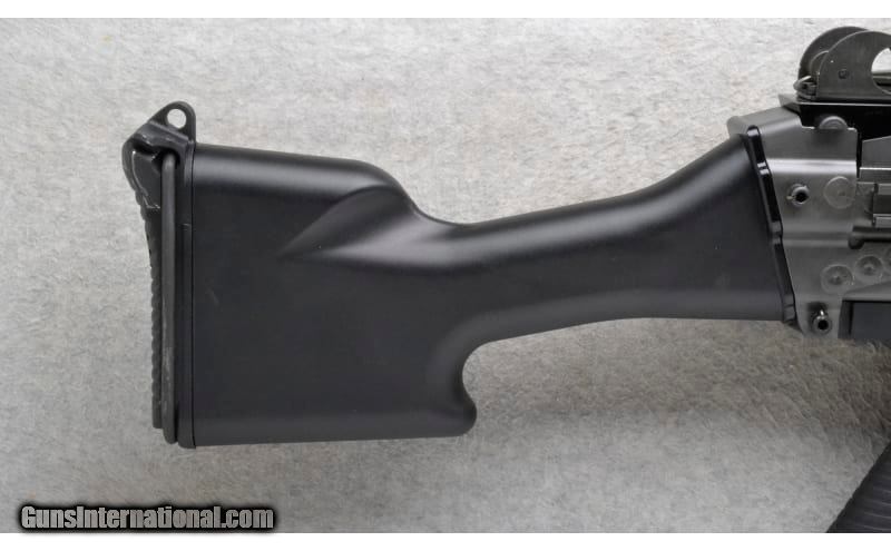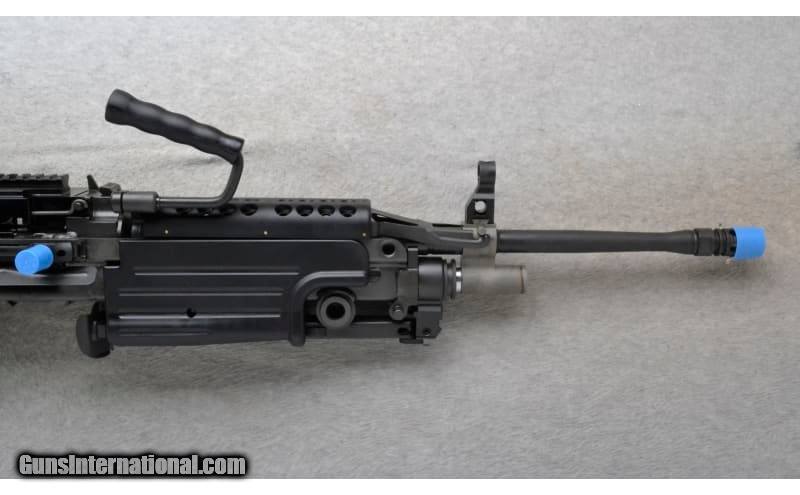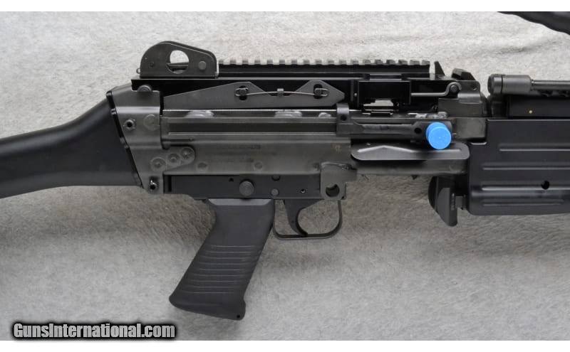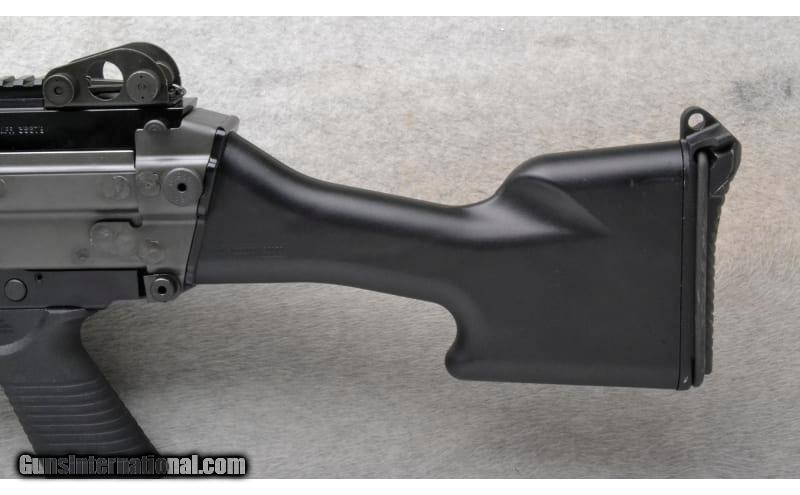 Description: This FN Model M249S Standard is a right hand semi-auto rifle in 5.56 NATO Cal. Piston driven, gas operated, air cooled. It is belt or magazine fed. It has an 18.5 inch alloy steel hammer forged chrome plated barrel with a M249S SAW muzzle device and a 1:7 RH twist. A M249 SAW adjustable sight with BDC to 1000 meters. A trigger pull 8.0 - 15.5 lbs. The PARA buttstock is a fixed black polymer and it has a grooved black polymer full pistol grip. The forearm is a M249 SAW. It has a fold and store Bi-Pod and carry handle. 5.56x45mm NATO SOLD Chambers: 30 round magazine or 200 round belt fed. Metal Condition: Like New. Bore Condition: Like New. Barrels: "18.5 inch barrel plus M249 SAW muzzle device. 1:7 RH twist. Alloy steel, hammer forged and chrome plated. Triggers: Trigger pull 8.0-15.5 lbs. Stock Dimensions: LOP 15.5 inches. Fore End: M249 SAW. Fold and store Bi-Pod. Butt Pad: Raised rib black polymer PARA butt stock. Weight: 17 lb. 8 oz. Sights: M249 SAW Adjustable with BDC to 1000 meters. Item Location: Richfield, WI |