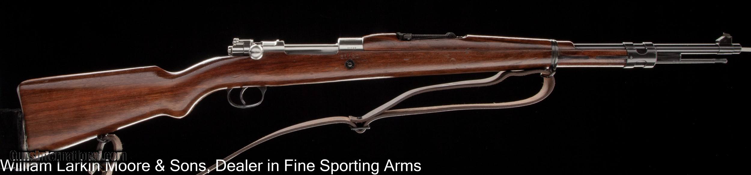 Description: ID # 7962 Make FN Model 1909 Venezuelan Mauser Configuration Bolt Action Gauge / Caliber 7x57 Price $1,200.00 Serial # 31180 Country of Origin Belgium Barrel Length (in Inches) 24 Stock Configuration Round Knob Semi-PG Receiver Finish Coin Finish Other Options Sling Condition EXC. Condition Weight 9#6oz Dimensions 13 1/4" LOP ???????William Larkin Moore & Sons LLC 16622 N 91st Street Suite 102-103 Scottsdale, AZ 85260 USA Tel or Text: 480-951-8913 Fax: 480-951-3677 SOLD Curio/Relic: Yes |