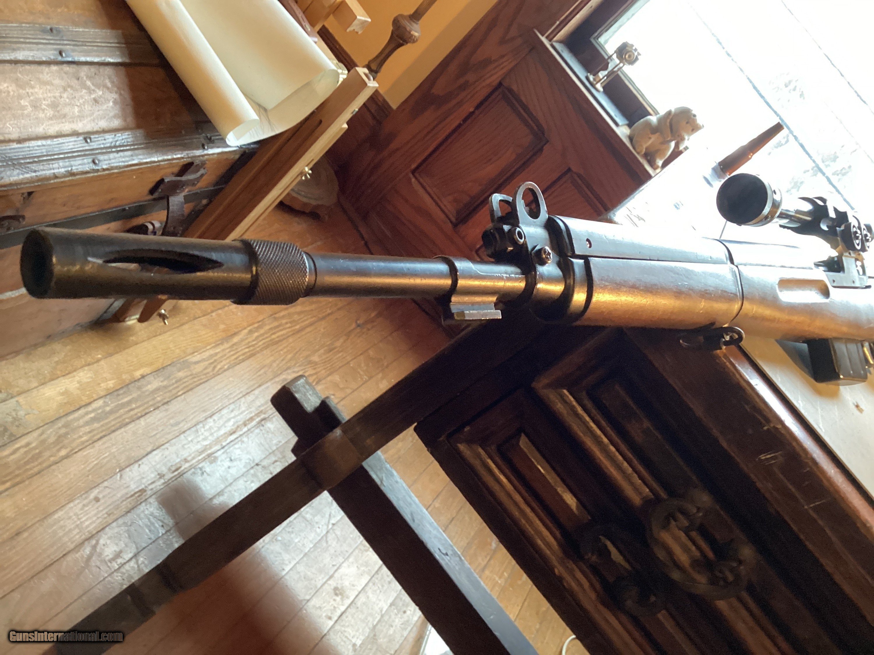 Description: FN 49 military Re-arsenal in new stock refinish metal ? Re-creating a custom upgraded sniper version of a extremely rare sniper Battle rifle considered the last of the Elegant battle rifles made after World War II with an echo reproduction scope Mounts are extremely hard to find reproductions 30 mm. With 1 inch inserts And a crystal clear Weaver K8 El Paso AO target scope, a flash suppressor and threaded barrel was also an additional upgrade And it isNew York Compliant.For extra cost and shipping I have different kinds of 8 mm military ammo I shot one and a inch groups in 100 yards with unknown reloads SOLD Curio/Relic: Yes Manufacturer: FN Model: 49 |