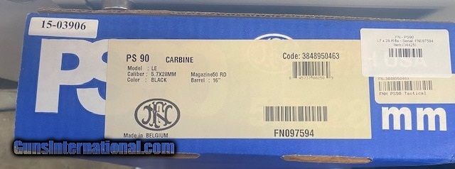 Description: Guns Listing ID: 499940 Excellent Condition In Original Box with 2-50 Round Magazines Capacity 50+1 Muzzle Muzzle Brake Grips Black Polymer Hand Right Max Capacity 50 OAL 26.23\" Rails M1913 Picatinny Receiver Finish Matte Black Receiver Material Aluminum Safety Ambidextrous Stock Description Fixed Bullpup with Thumbhole Stock Finish Group Black Stock Material Synthetic Twist 1:9\" Weight 6.28 lbs Barrel Description Chrome-Lined Cold Hammered Forged SOLD Manufacturer: FN America Model: PS90 Caliber Info: 5.7X28MM Condition: Used - Non-Certified Barrels: 16" BARREL Finish: BLACK |