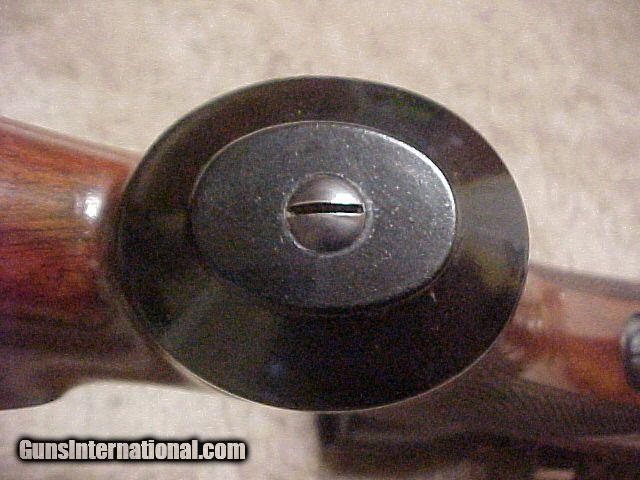 Description: Serial # E6XXX. An excellent FN Mauser sporter chambered in the classic 7x57 with 24” barrel, excellent bore, 95% blue, 1 standing, 2 folding rear, bead on ramp front sights and barrel band swivel. Possibly a special order piece with options like dlx wood, bbl band swivels, and special multi-leaf rear sight. Deluxe FN action with wing safety and checkered panel bolt handle. Beautiful nicely figured circ walnut with cheekpiece, full PG, schnable FE tip, very fine checkering, all in great condition with original horn BP with FN logo and horn PG cap. Scope, rings, and bases not included. SOLD Curio/Relic: Yes |