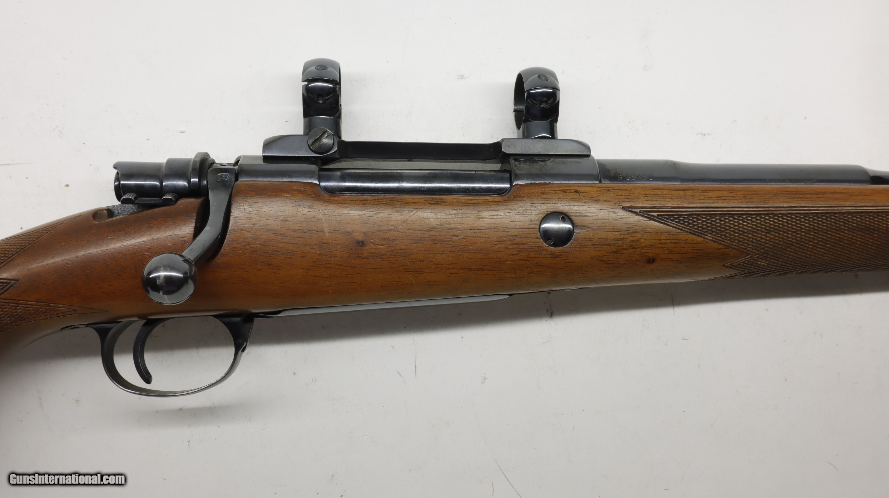 Description: FN Bolt Mauser action rifle, company that made the Browning Safari in Belgium. 308 Winchester, 23" Barrel. Factory finish on both wood and metal, factory recoil pad. Perfect bore. SN is B584xx. Nice clean classic rifle! Comes with the 1" rings and bases as shown., We will trade for silver and gold. All my guns (except Layaway) come with a non-firing, 3 day unconditional return privilege, from the day UPS delivers to your dealer. Buyer pays shipping both ways if the gun comes back. Please make sure to make it to your FFL to inspect within the 3 days. We accept personal check, any certified funds, Vennmo or Zellle. We can also take your credit card, +3%. Email me if you would like these pictures sent to you, they will come through bigger and better than on the listing page here. We do offer Layaway. Our standard terms are 25% down, 90 days. Initial deposit is not refundable. Layaway guns do not have an inspection or return policy. Email me with any questions. Please check your local laws to confirm it is legal to own in your state! Buyer pays $60 shipping and insurance in a brand new PLANO hard case to your FFL in the lower 48. AK, HI or PR is extra. I will ship to California, as long as it is legal, NO PROBLEM! I am a licensed FFL, and will include a copy of my FFL with the gun for your dealer’s records. I will ship to a C&R if the gun is eligible. I will ship to California, but you need to confirm the gun is legal where you are, California or other. WE BUY AND CONSIGN GUNS AND GUN COLLECTIONS! We will travel to pick up collections! I am always looking for good clean, old original Winchesters to buy, consign, or trade, especially Pre '64's model 70's and model 54's. WE ALSO TRADE FOR CLASSIC CARS AND TRUCKS! We also trade for gold and silver. SOLD Rifle Caliber: .308 Winchester Manufacturer: FN Model: Safari Barrel Length: 23 Condition: Used |