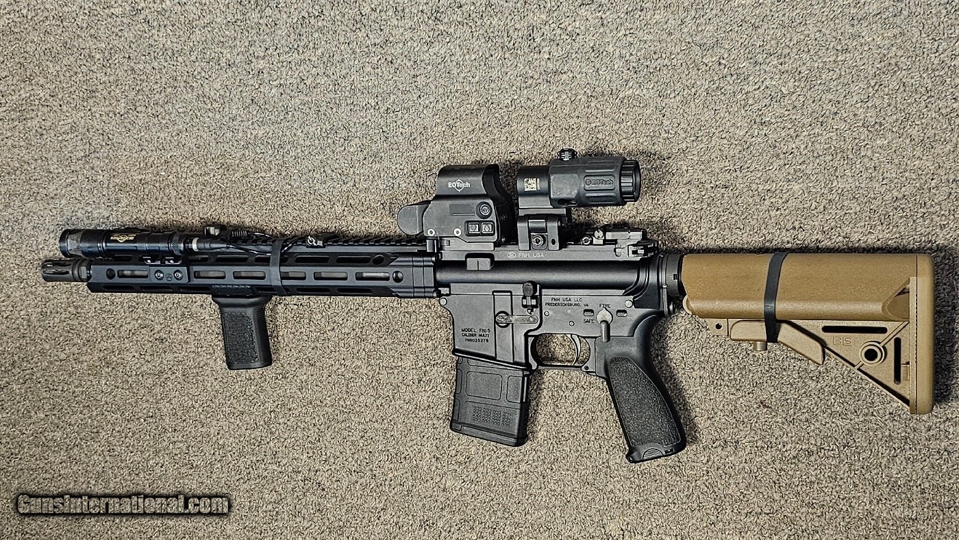 Description: Guns Listing ID: 1308792 THIS USED FN HAS A DANIEL DEFENSE UPPER WITH PINNED AND WELDED FLASH HIDER (16\" TOTAL ), EOTECH RED DOT AND EOTECH MAGNIFIER, SURE FIRE LIGHT WITH THUMB SWHITCH COMES WITH ONE 20RND MAG SOLD Manufacturer: FN Model: FN15 Caliber Info: 5.56X45MM NATO Condition: Used - Non-Certified Barrels: 16 BARREL Finish: BLACK |