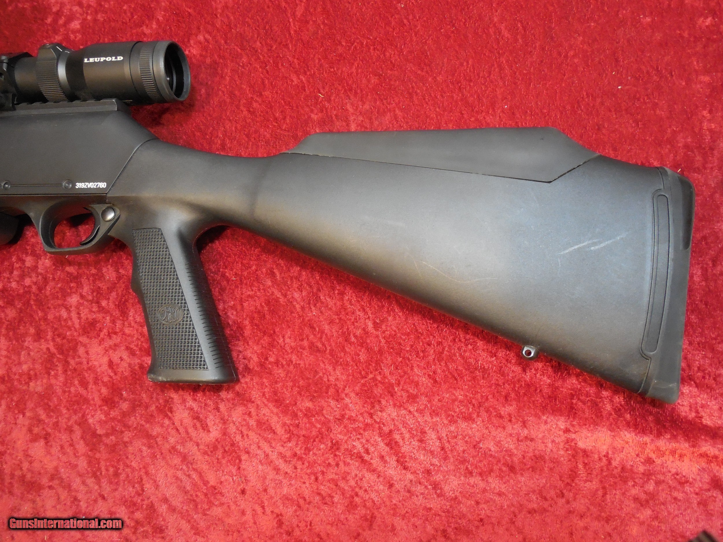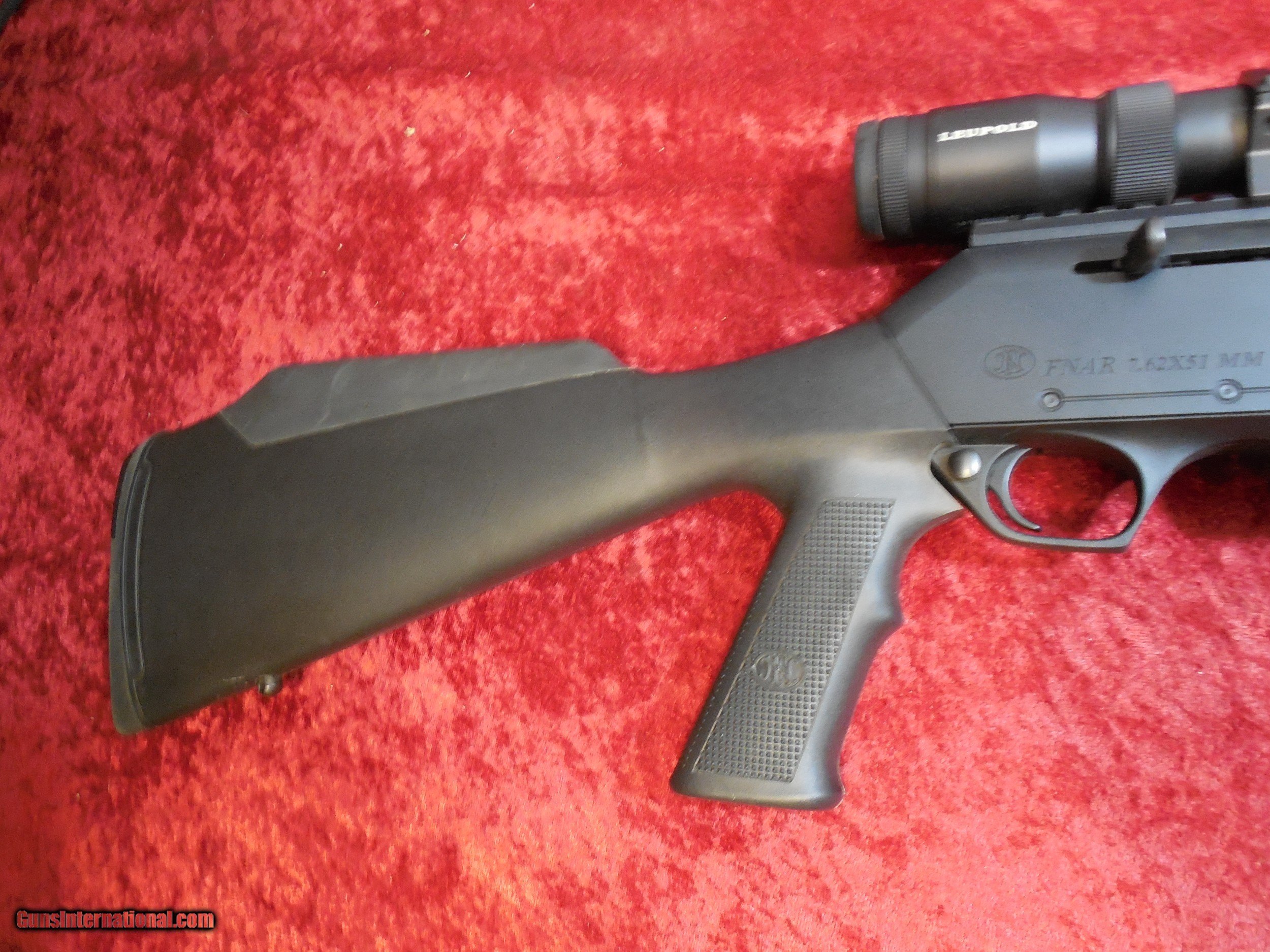 This used rifle is based on the popular BAR made by Browning, FN's FNAR is a short-stroke, gas piston design with a 20 inch fluted barrel. This one is in excellent condition with a few light surface marks on the receiver and barrel from normal light use. This gun DOES NOT come with the Leupold scope and rings. These will be removed once it has been paid for as I may have another wild hog to shoot. It includes the factory case, printed manual, extra shims and risers, one 20 round magazine, and one 5 round magazine.
