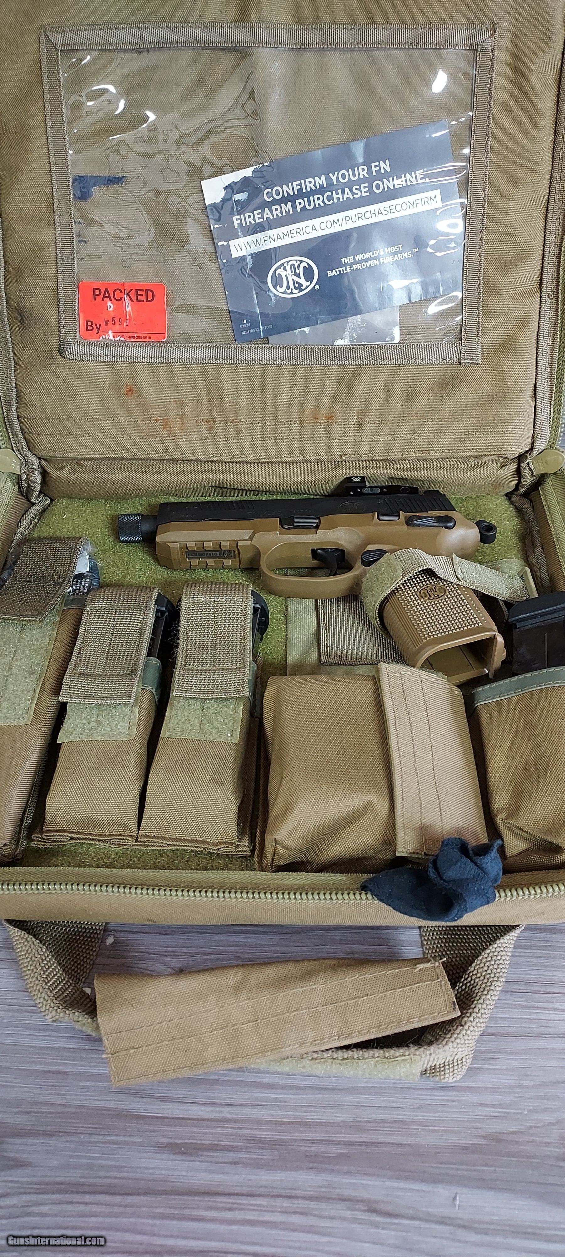 Description: Guns Listing ID: 1127107 FN HERSTAL FNX-45 TACTICAL DARK FLAT EARTH 45ACP/45 AUTOMATIC SEMI 7\" BARREL 20 ROUNDS ORGINAL CASE/CLOTH WITH SCOPE AND 3 EXTRA MAGS SOLD Manufacturer: FN Model: FNX 45 ACP Flat Dark Earth Caliber Info: .45 ACP Condition: Used - Non-Certified Barrels: 7 BARREL Finish: FLAT DARK EARTH |