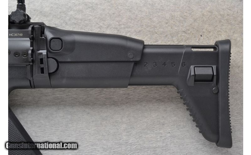 Description: This FN Herstal Belgium Model Scar 17S is a semi-auto rifle in 7.62x51mm Cal. The barrel is 16 inches plus a muzzle break. It has a folding adjustable hooded front post sight and a folding adjustable two position aperture rear sight. A full length top picatinny rail plus side and bottom rails. The butt stock is a right side folding 6 position adjustable black polymer and a textured black polymer full pistol grip. It has an ambidextrous safety, magazine release and the charging handle can be switched to either side. 7.62X51mm SOLD Chambers: Semi-Auto 10 round magazine. Metal Condition: Excellent. Bore Condition: Excellent. Barrels: 16 inch barrel plus a muzzle break. Stock Dimensions: LOP 14 3/8 inches. Fore End: Smooth grip side vented metal alloy Butt Pad: Textured black rubber. Weight: 7 lb.14 oz. Sights: Folding adjustable post front with an open top hood. Folding adjustable two position aperture rear. Item Location: Allen, TX |